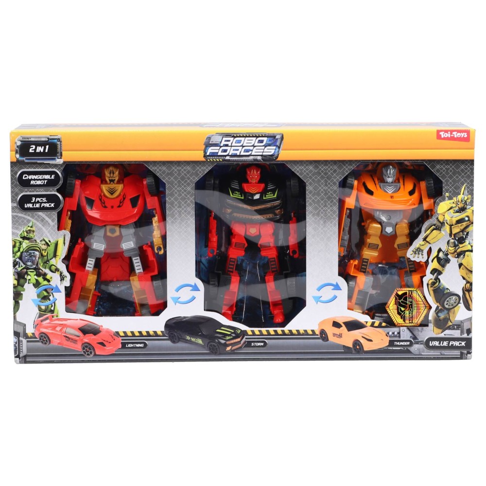 Maak je speelervaring compleet met de Robot Verander Auto set! Deze spannende speelgoedset omvat drie transformeerbare robots die moeiteloos veranderen in voertuigen. Ontworpen voor kinderen, biedt het eindeloze mogelijkheden voor creatief spel en stimuleert het motorische vaardigheden. Laat de verbeelding tot leven komen terwijl kinderen hun favoriete scènes nabootsen en rollenspellen creëren. Perfect voor urenlang speelplezier, deze actiefiguren zijn een geweldige aanvulling op elke speelgoedcollectie en dragen bij aan de ontwikkeling en fantasie van jonge kinderen. Transformeer het speelplezier met deze unieke set!