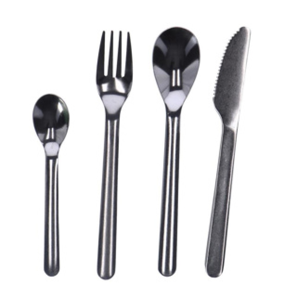 - Bestaat uit een mes, vork, lepel en kleine lepel