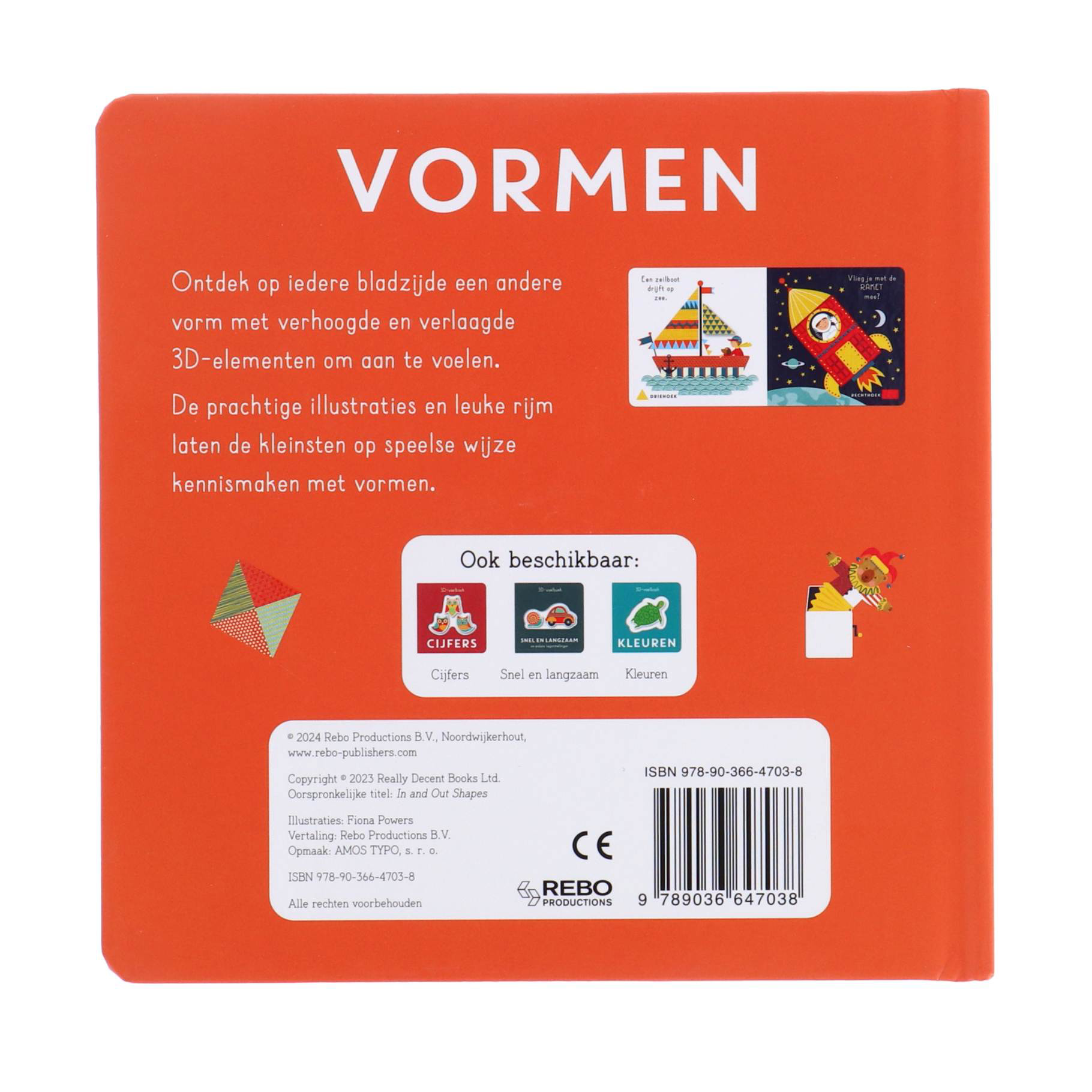 Boek 3D-Voelboek Vormen heeft 10 pagina’s en is geschikt voor kinderen vanaf 1 jaar.