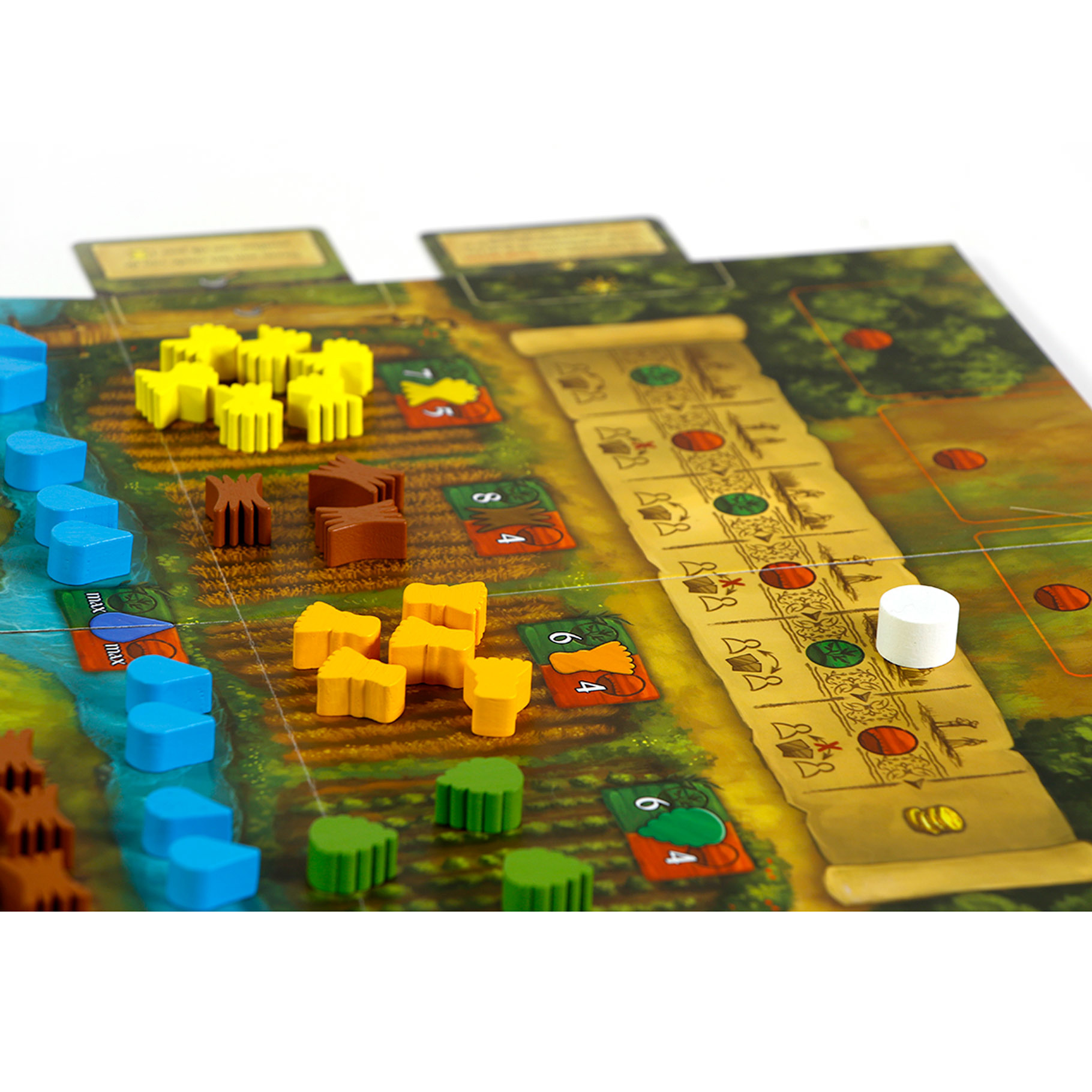 Brood en Bier is een strategisch spel voor 2 spelers.Door kaarten te spelen oogst je grondstoffen, verbeter je je dorp en verkoop je bier en brood. Elke kaart kan op drie verschillende manieren worden gebruikt. Schuif de kaart boven het speelbord voor een oogst, onder het speelbord voor een uitbreiding van het dorp of leg de kaart af om bier en brood te verkopen.