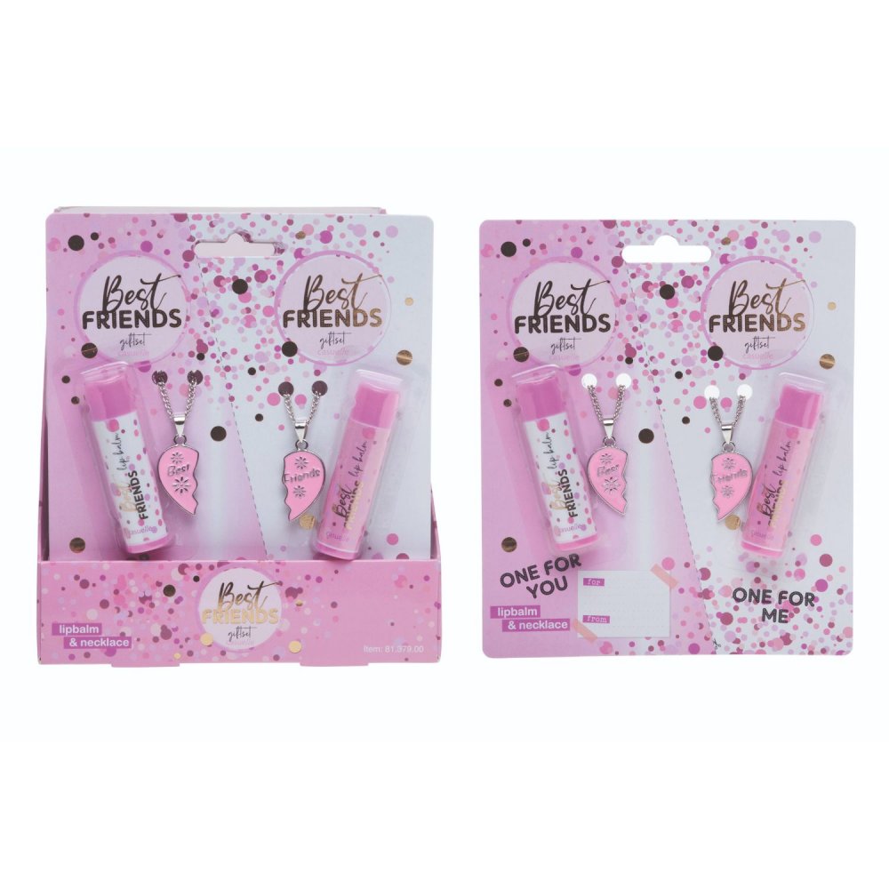 Casuelle Party BFF Lipgloss Ketting. In de verpakking zitten 2 lipglossen en 2 kettingen, 1 voor jou en 1 voor je beste vriendin. De kettingen passen aan elkaar en vormen dan een hartje.