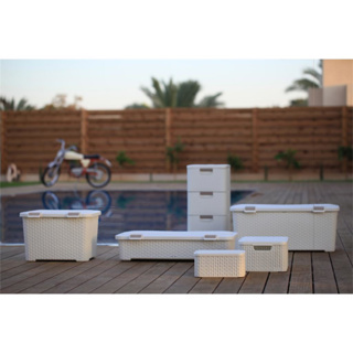 Ontdek het stijlvolle CURVER Style Mandje 30L L met deksel in vintage wit, perfect voor het opbergen van diverse items. Dit duurzame en gemakkelijk te reinigen kunststof mandje heeft een geweven patroon dat natuurlijke rotan imiteert. Voorzien van een goed passend deksel en geïntegreerde handgrepen, is dit veelzijdige mandje geschikt voor gebruik in elke ruimte van uw huis. Voeg stijl en functionaliteit toe met dit prachtige opbergmandje.