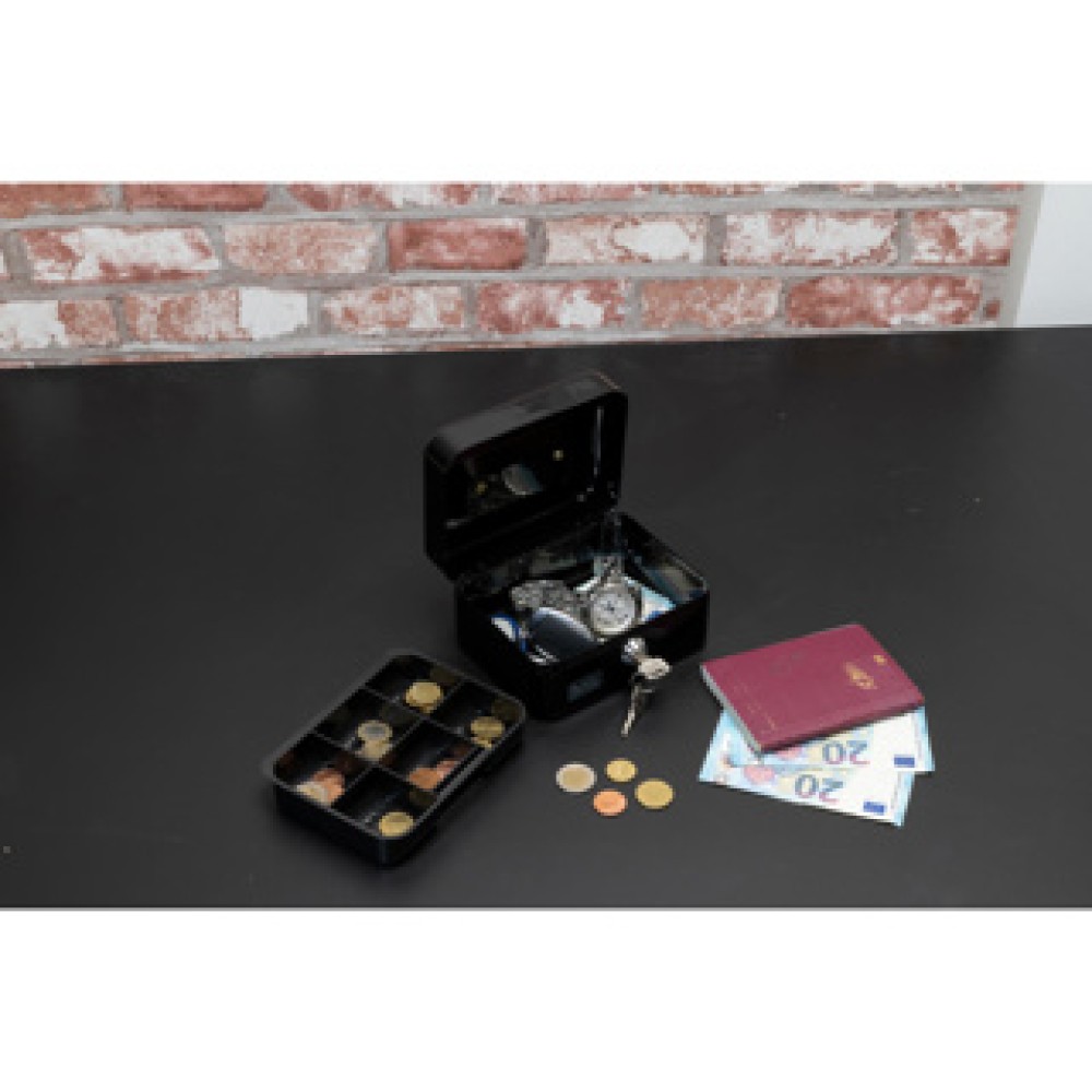 Bewaar uw contant geld veilig en georganiseerd met het Geldkistje. Dit praktische opbergmiddel is ideaal voor zowel thuisgebruik als evenementen waar contant geld wordt beheerd. Met zes handige vakken voor muntgeld en een ruime onderin voor briefgeld, houdt u al uw financiën overzichtelijk. Het duurzame ontwerp van metaal in een stijlvol zwart biedt niet alleen bescherming, maar ook een moderne uitstraling. Bovendien wordt het kistje geleverd met twee sleutels voor extra beveiliging, zodat u met een gerust hart uw waardevolle bezittingen kunt opbergen. Perfect voor iedereen die een veilige en georganiseerde oplossing zoekt!