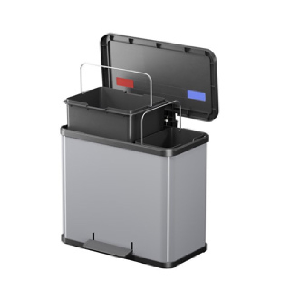 De Hailo Pedaalemmer in metallic grijs is een moderne en duurzame oplossing voor afvalbeheer in uw huis. Deze stijlvolle prullenbak is vervaardigd uit robuuste metalen materialen en beschikt over een gebruiksvriendelijk kunststof deksel. Met twee uitneembare binnenemmers is deze pedaalemmer perfect voor gescheiden afvalinzameling. Het "Soft Close" sluitmechanisme zorgt voor een stille afsluiting, zodat u ongestoord kunt genieten van uw ruimte. Dankzij de praktische afmetingen en eco-vriendelijke materialen is deze pedaalemmer niet alleen functioneel, maar ook een stijlvolle aanvulling op elke keuken of andere ruimte.
