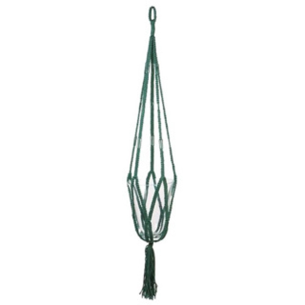 Breng een vleugje stijl in je interieur met de In the Mood Collection Pothouder in een rijke donkere groene tint. Deze prachtige macramé plantenhanger is ontworpen om zowel ronde als vierkante potten elegant op te hangen. Met een stevige constructie van duurzaam touw, vergelijkbaar met parachutetouw, biedt hij de veilige ondersteuning die je planten nodig hebben. Perfect voor in de woonkamer, op het balkon of onder een overkapping, voegt deze pothouder een trendy accent toe aan elke ruimte, zowel binnen als buiten. Geef je planten de perfecte plek om te stralen!