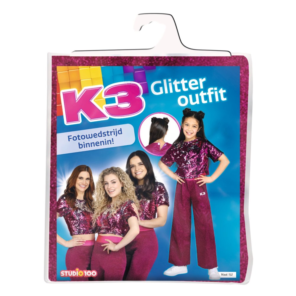 Opgepast K3 fans, de nieuwste K3 outfit is er! Schitter en straal net als Hanne, Marthe en Julia in de enige echte K3 glitteroutfit!