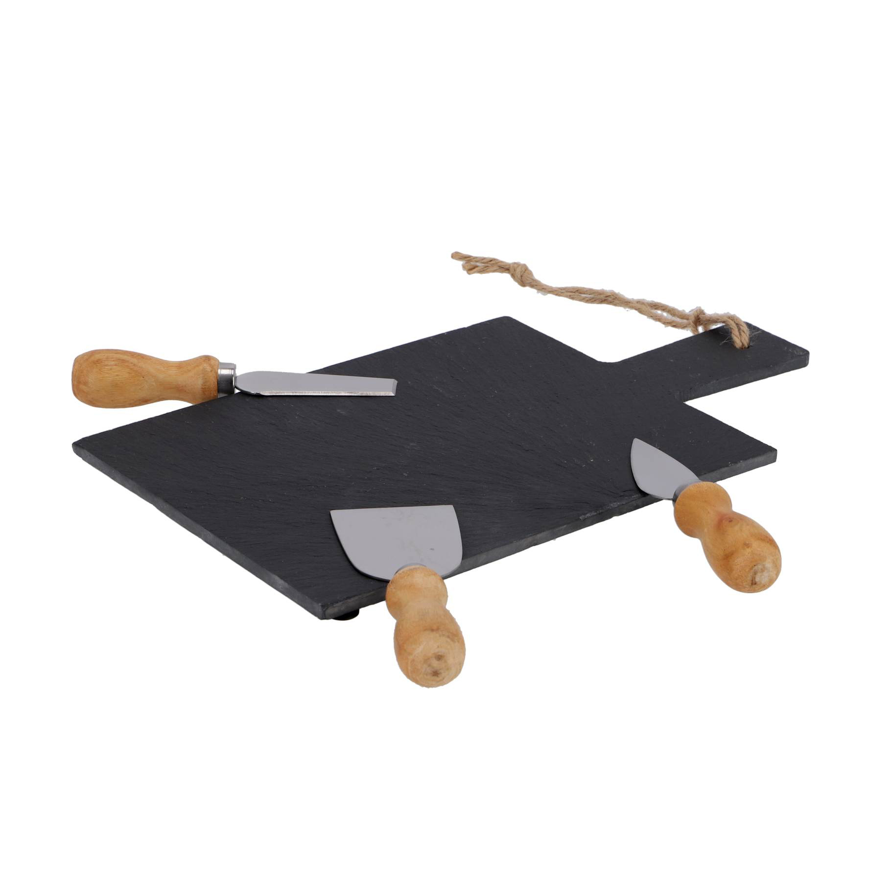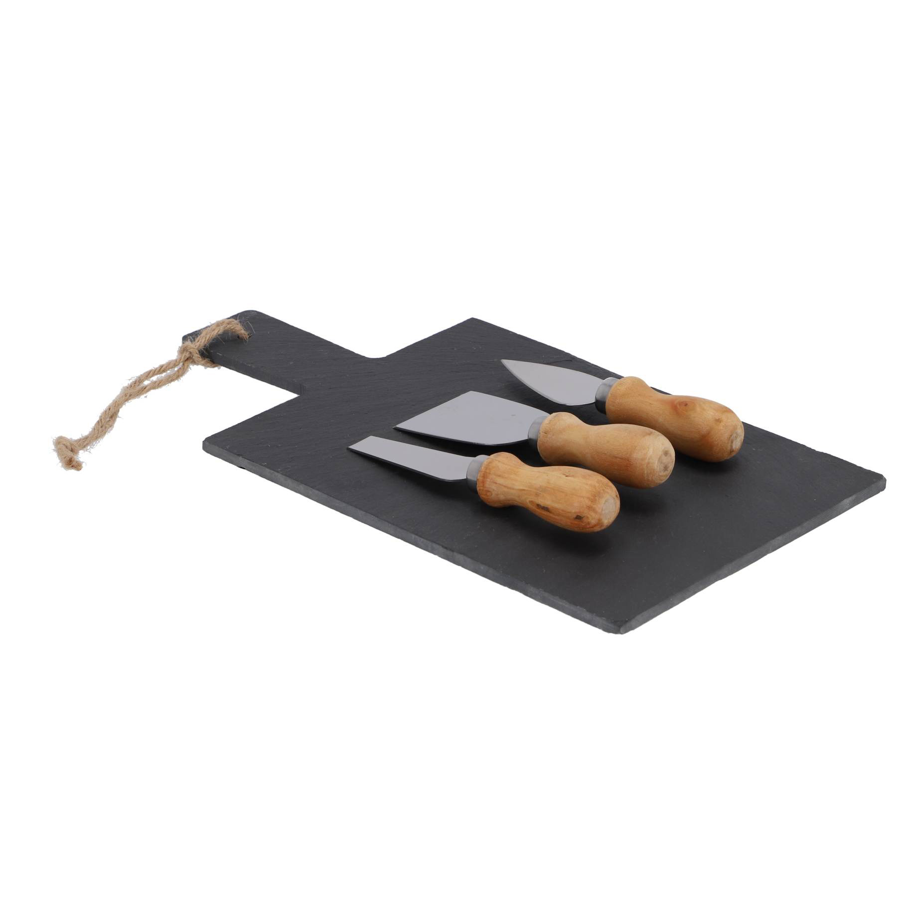 Merk: Excellent Houseware. Afmetingen kaasplank: 33cm x 17cm. Lengte mesjes: 14cm. Materiaal: leisteen.