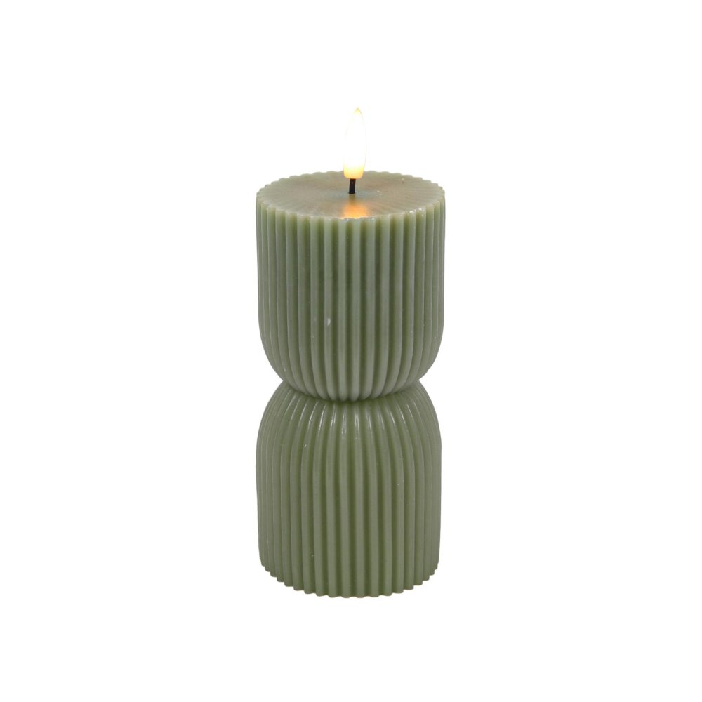 Led kaars ribbel zacht groen d7x15cm 2xAA excl.