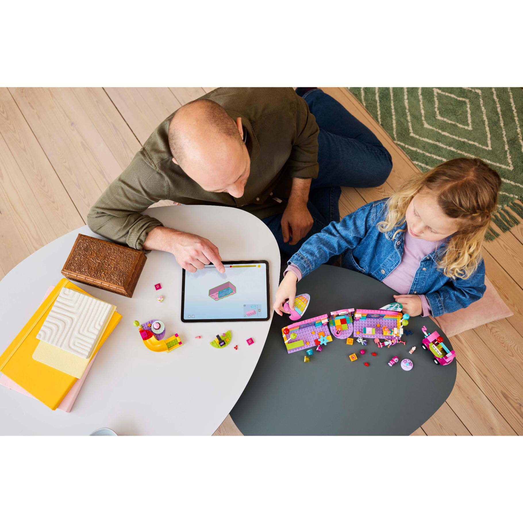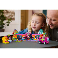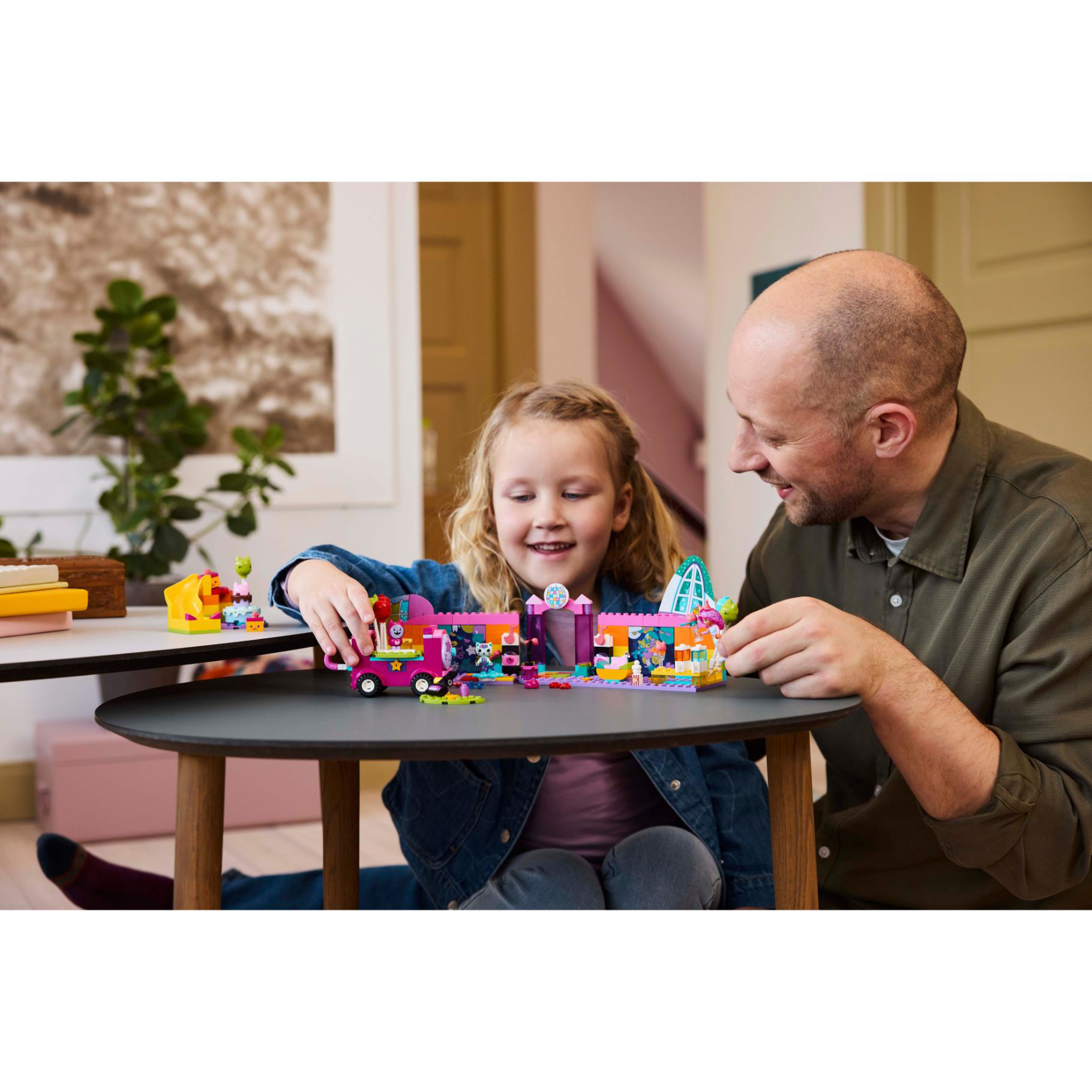 Gabby’s feestkamer (10797) is de ultieme discospeelset voor fans van Gabby’s poppenhuis van DreamWorks Animation. Dit speelgoed voor kinderen ontwikkelt het zelfvertrouwen, de concentratie en het probleemoplossend vermogen bij kleuters vanaf 4 jaar. Dit speelgoed voor meisjes en jongens is een discospeelset en nog veel meer! Met Gabby, Daniël James ‘DJ’ Kattenkruid, Kitty Fee en Meerminkat en verschillende muzikale feestaccessoires, waaronder een duwbare feestbus met ingebouwd keyboard, een draaibare dansvloer, een gitaar, 2 microfoons en een sprankelende discobal, zijn alle ingrediënten aanwezig voor urenlang fantasierijk speelplezier! Er zijn ballonnen en rolschaatsen voor de rollerdisco, popcorn en 2 glazen vol slushie-ijs voor de chill-outzone, een katapult en blikjes voor het omgooispel. Gabby krijgt een taart en cadeautjes die via de glijbaan worden bezorgd. De set wordt geleverd met een grote startsteen en intuïtieve bouwinstructies in de vorm van een kleurrijk stripverhaal.