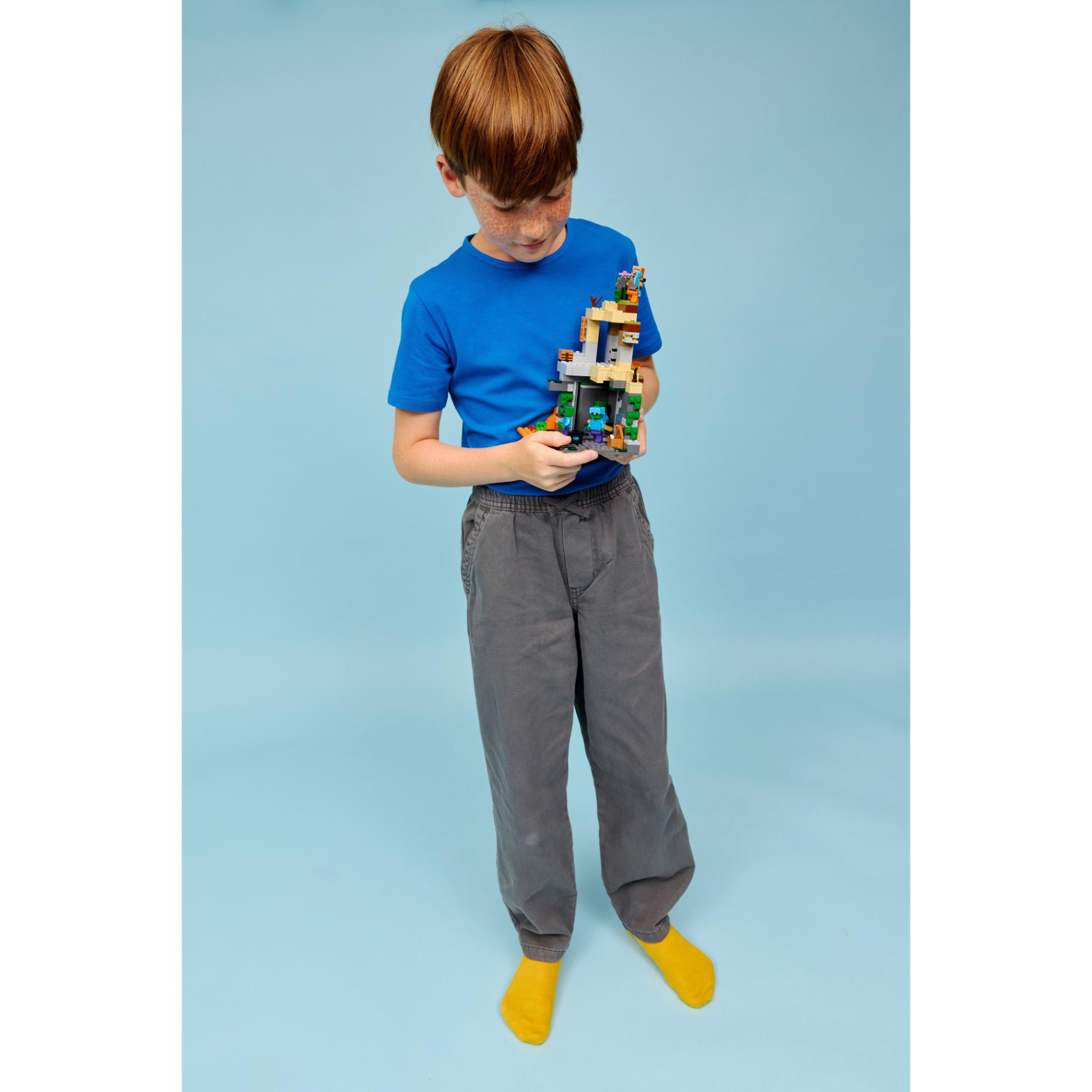 - LEGO MINECRAFT PERSONAGE EN MOBS – inclusief een Woestijnreiziger-Minecraft minifiguur, slijm en 3 zombiefiguren, waaronder één met betoverde beenstukken en gouden zwaard en één met diamanten helm