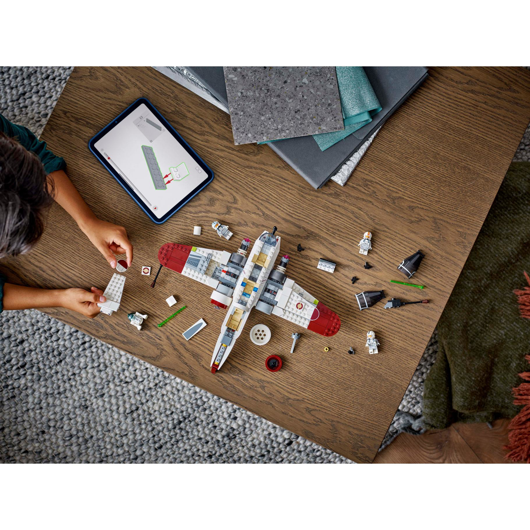 - Starfighter van LEGO® stenen – met 3 cockpits die open kunnen, plek voor R4-P44, 6 vleugels, waaronder 4 verstelbare vleugels met hendel voor de aanvalsmodus en vliegmodus, plus 2 schieters met veermechanisme