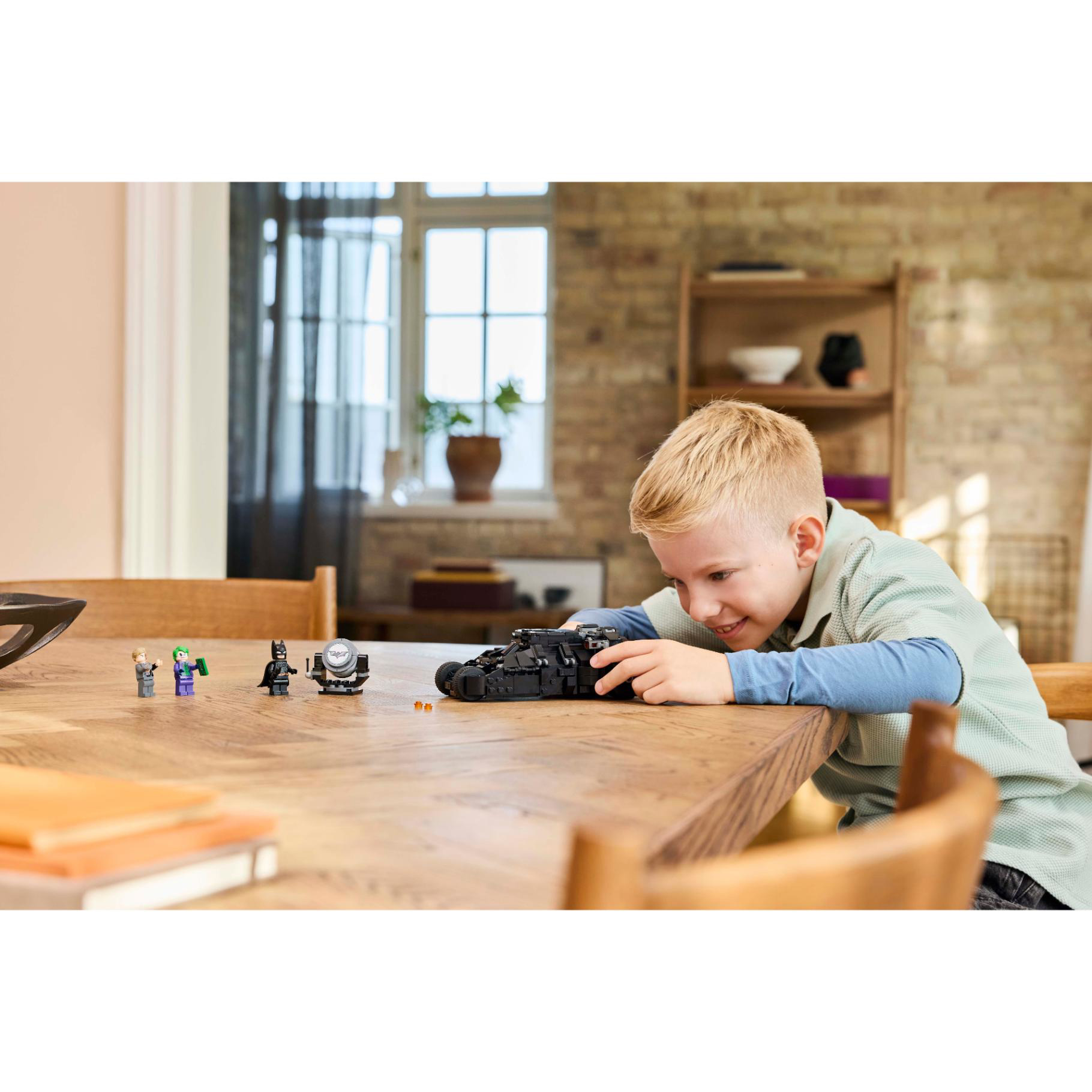 - LEGO® Batman™ Tumbler Batmobile™ – de speelgoedauto heeft een vlamelement bij de uitlaat, kan worden geopend en bevat een bedieningspaneel en een cockpit met ruimte voor de Batman minifiguur