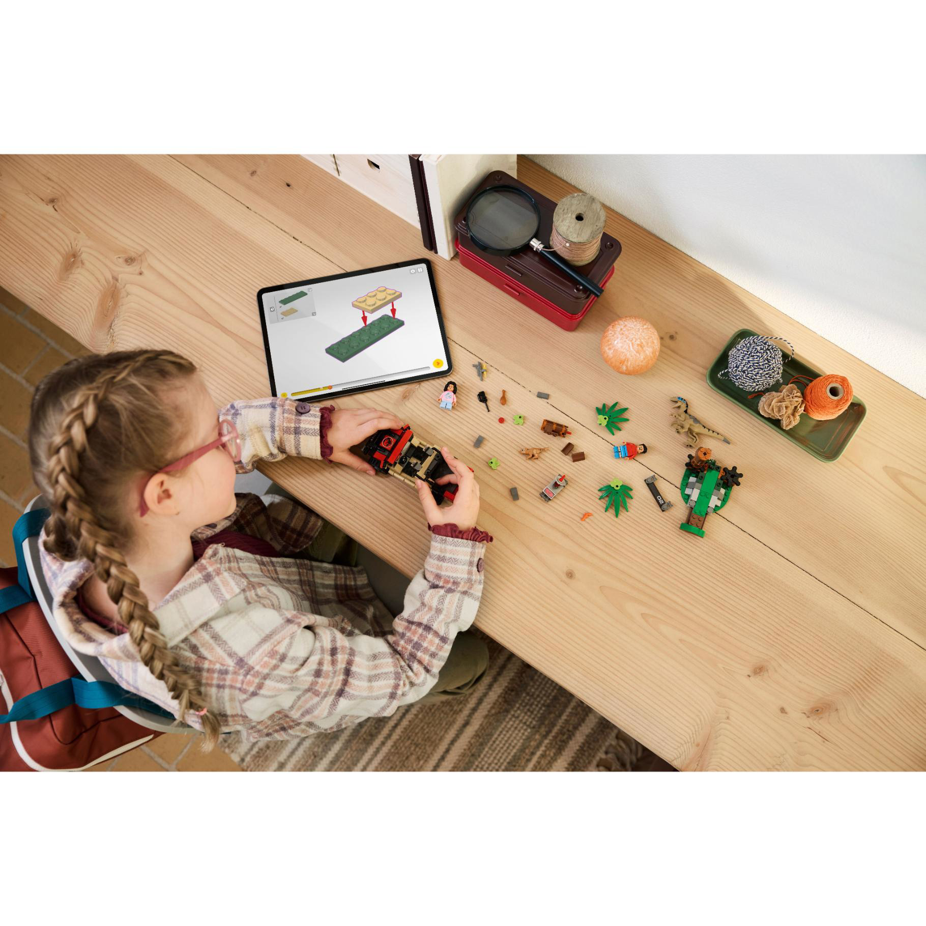 - Creatieve bouwset – inclusief voorgevormde LEGO® dinosaurusfiguren van een baby Aquilops en een Velociraptor, plus een terreinwagen en minifiguren van Reuben en Isabella voor leuke achtervolgingsavonturen