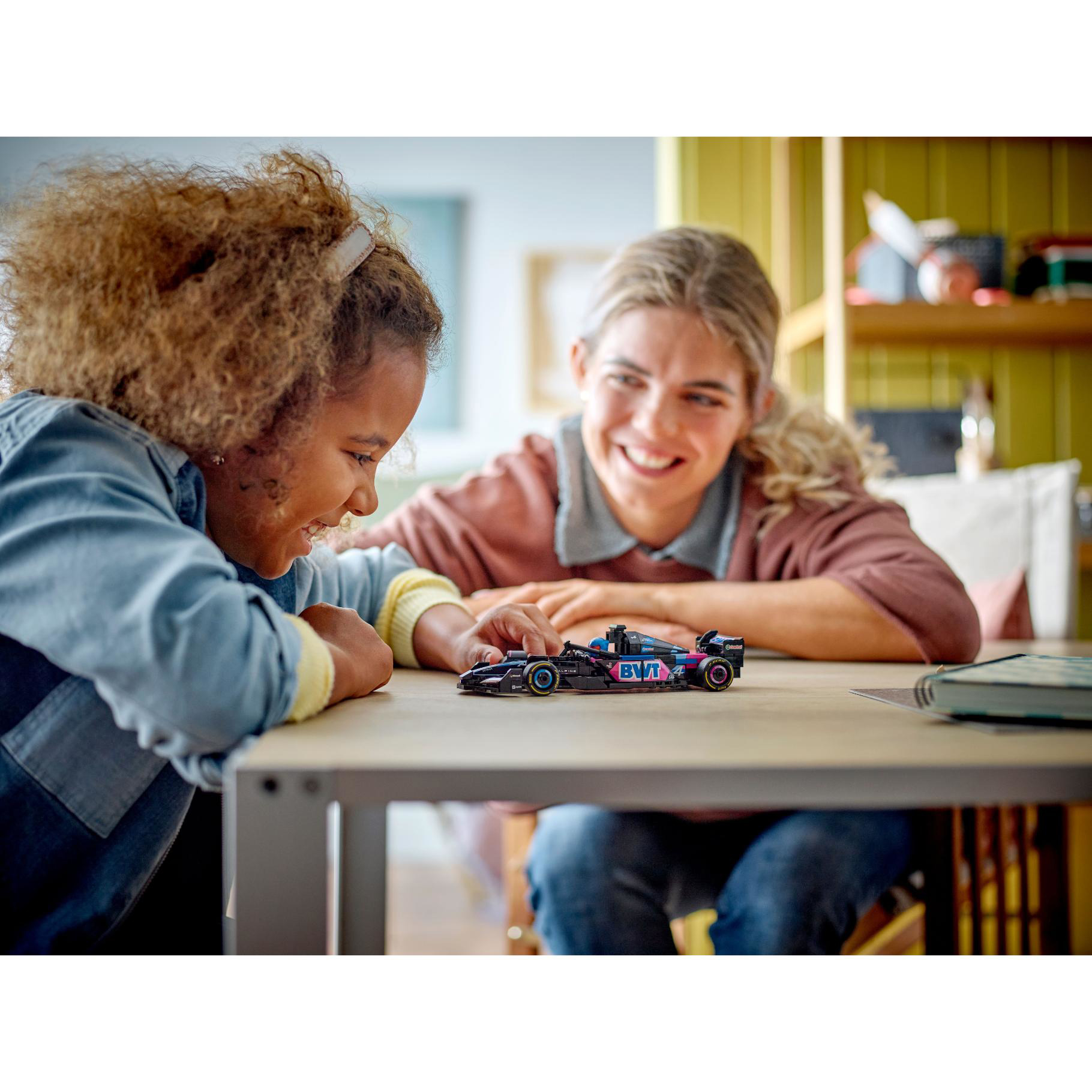 - 1 F1 coureur minifiguur – de LEGO voertuig set bevat een minifiguur van een Formule 1 coureur in een Alpine outfit met een helm die kinderen in de cockpit kunnen plaatsen om spannende F1 races