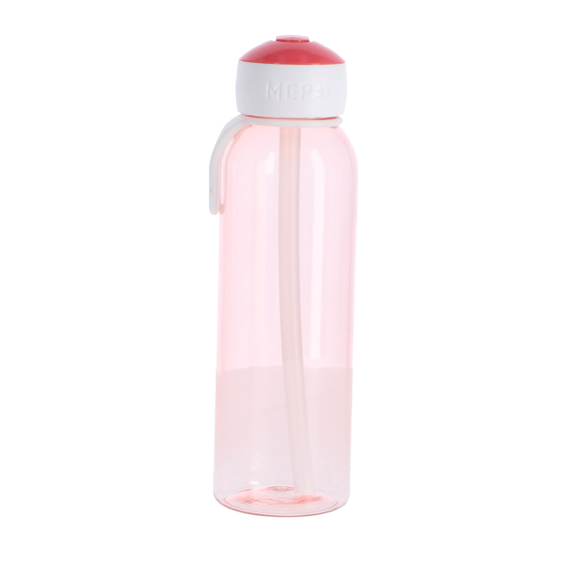 Merk: Mepal. Inhoud: 500ml. Diameter: 6,4cm. Hoogte: 22,2cm. Materiaal: kunststof. Kleur: roze, transparant.