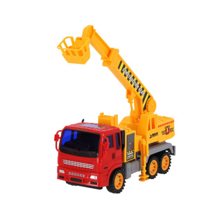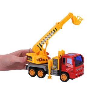 Kinderen kunnen spelen dat ze aan het werk zijn op de bouwplaats met deze takelwagen. De arm is echt omhoog te bewegen en uit te schuiven en de steunpoten aan de zijkant kunnen worden uitgetrokken. Dankzij de frictiemotor kan de wagen zelf rijden, nadat hij voortgeduwd is.