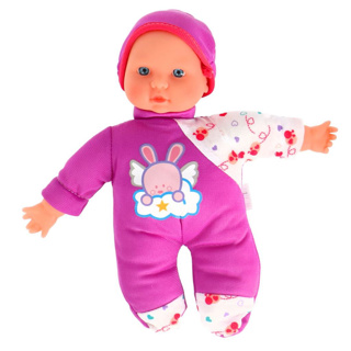 Ga heerlijk knuffelen met deze zachte pop van 28 cm groot. De pop heeft een leuke onesie aan en een mutsje zodat de pop lekker warm blijft. De pop voelt heerlijk zacht aan. Neem de pop overal mee naartoe!