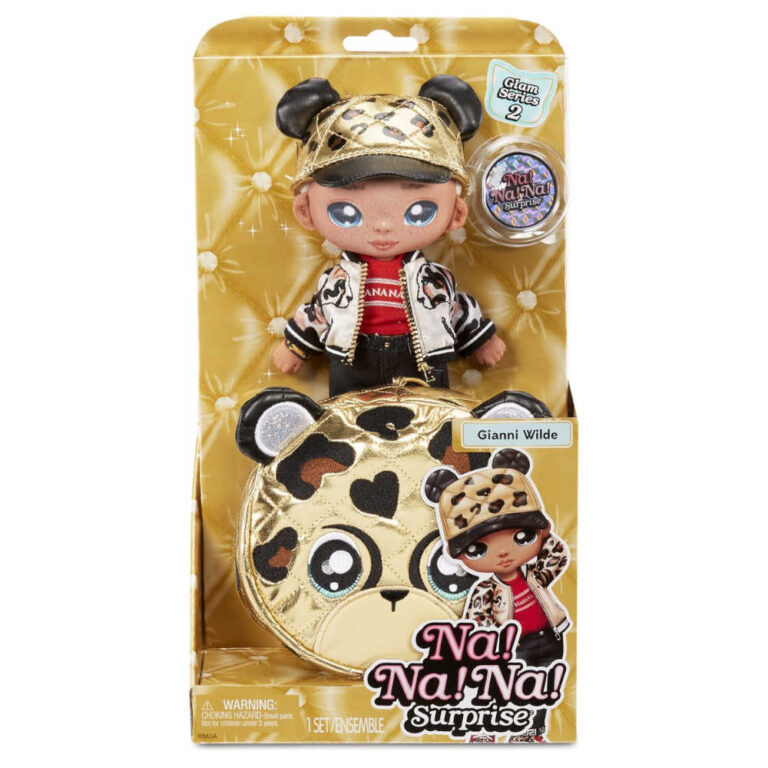 Geef je leven nog meer glamour met de gloednieuwe Na Na Na Surprise Glam 2-in-1 zachte modepop van serie 2! Je krijgt 2-in-1 met een zachte modepop én een verzamelbaar pompontasje van metallic stof met dierenthema en clip! De Glam-serie komt met opvallende poppenmode van metallic stof met dierenthema en een bijpassend tasje met een handige en schattige clip in de vorm van een dier om het aan je rugzak of aan een grotere tas te hangen. Na Na Na Surprise-poppen zijn de allereerste zachte, poseerbare modepoppen met geprint gezichtje en geprinte modedetails.