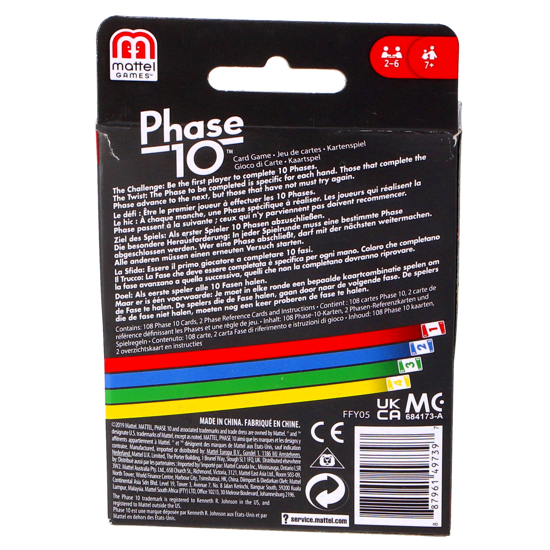 De makers van UNO™ hebben een kaartspel in rummykubstijl bedacht met een uitdagende en spannende variatie! Het doel van het spel is 10 verschillende fasen te voltooien met twee setjes van drie kaarten, één rijtje van zeven kaarten, of een set van zeven kaarten in dezelfde kleur. De speler die als eerste alle fasen heeft voltooid, is de winnaar.