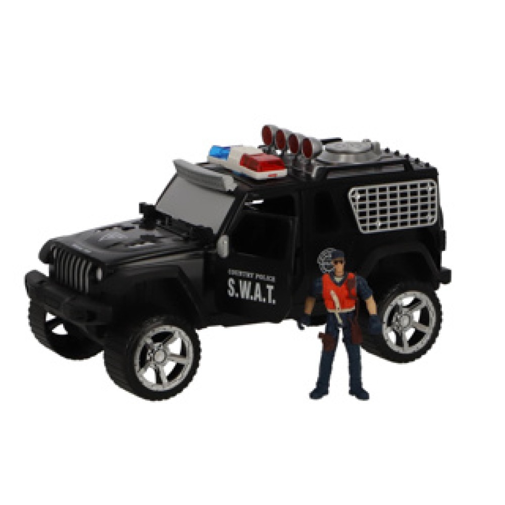 Ontdek de spannende wereld van de politie met deze veelzijdige speelgoed politieauto! Deze auto is voorzien van opwindende licht- en geluidseffecten, wat elk avontuur nog realistischer maakt. Het pakket bevat een dappere politieagent, een trouwe politiehond en diverse accessoires, perfect voor creatieve rollenspellen. Kinderen kunnen hun fantasie de vrije loop laten en spannende missies uitvoeren. Dit spel bevordert niet alleen de verbeeldingskracht maar ondersteunt ook de motorische vaardigheden van jonge kinderen. Laat je kleintje de held van hun eigen verhaal zijn met deze indrukwekkende speelgoedset!