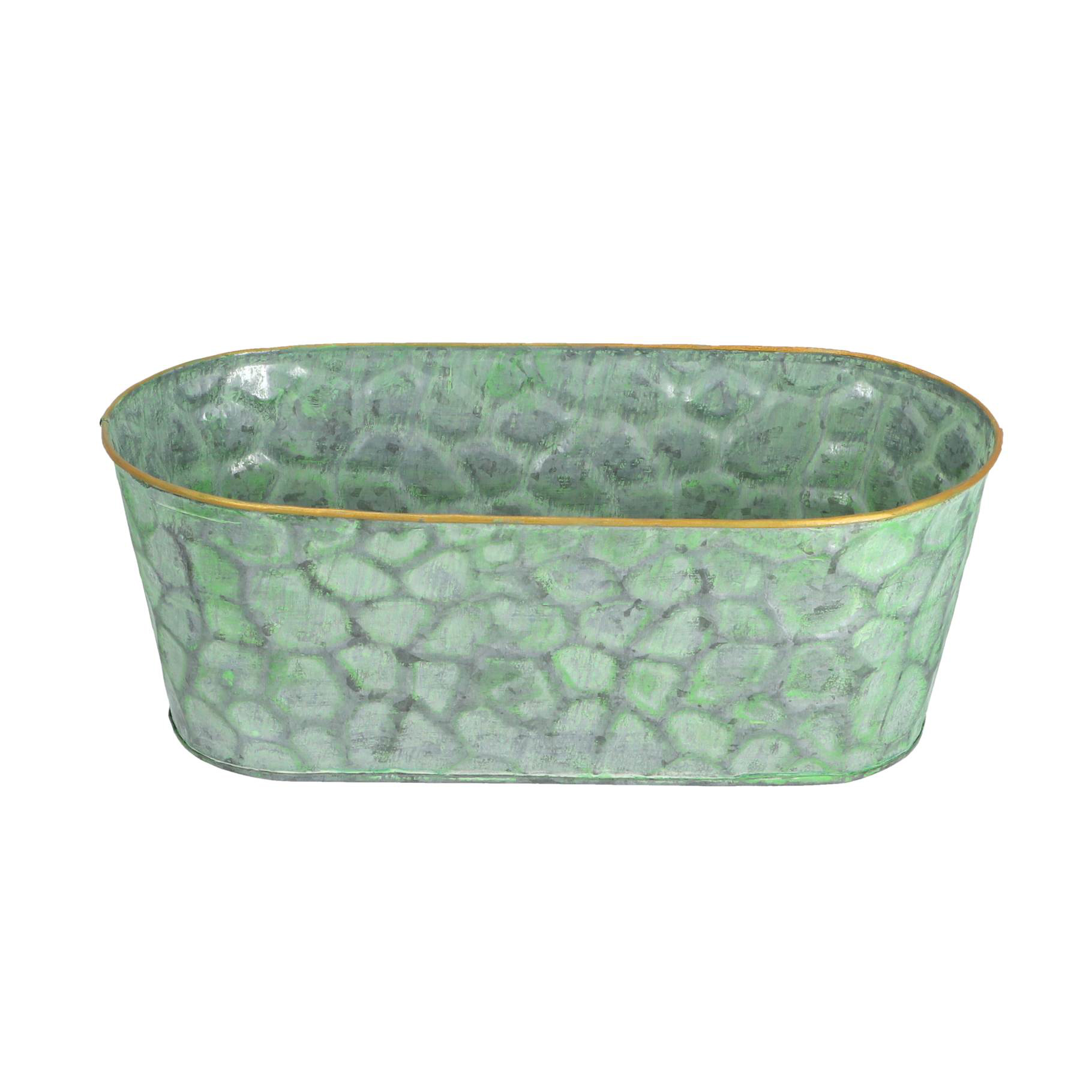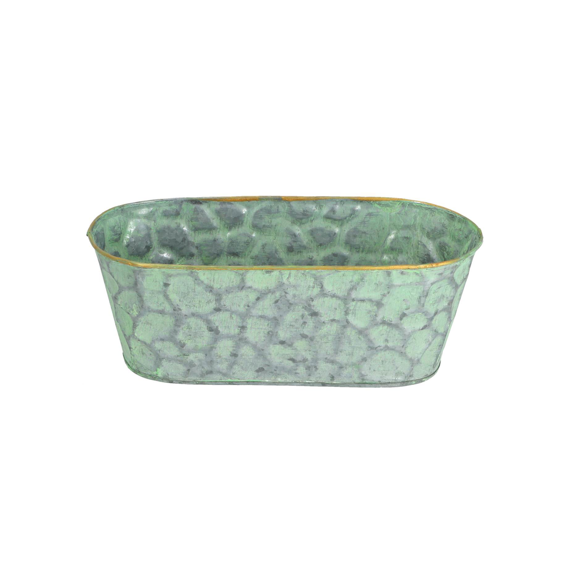 PTMD BLOEMBAK DIANNE GROEN SET VAN 3. PTMD Dianne groene ovale bloempotset van 3. Voor binnens- en buitenshuis gebruik. Afmetingen grootste bloempot: 33cm lang, 16cm breed, 12cm hoog. Afmetingen verpakking: 35cm lang, 26cm breed, 16cm hoog. Materiaal: zink.