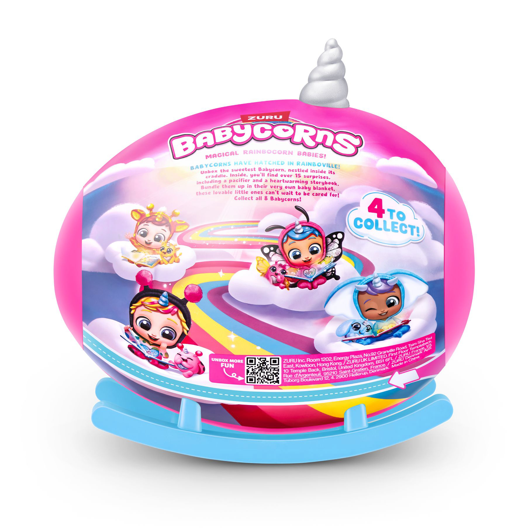 Korte beschrijving: De Babycorns zijn gearriveerd en kunnen niet wachten om te spelen! Haal de schattigste magische Rainbocorn baby’s uit de doos, knus verscholen in hun magische wiegjes. Je zult meer dan 15 verrassingen binnenin vinden. Wikkel ze in hun eigen babydeken. Deze liefdevolle kleintjes kunnen niet wachten om verzorgd te worden!