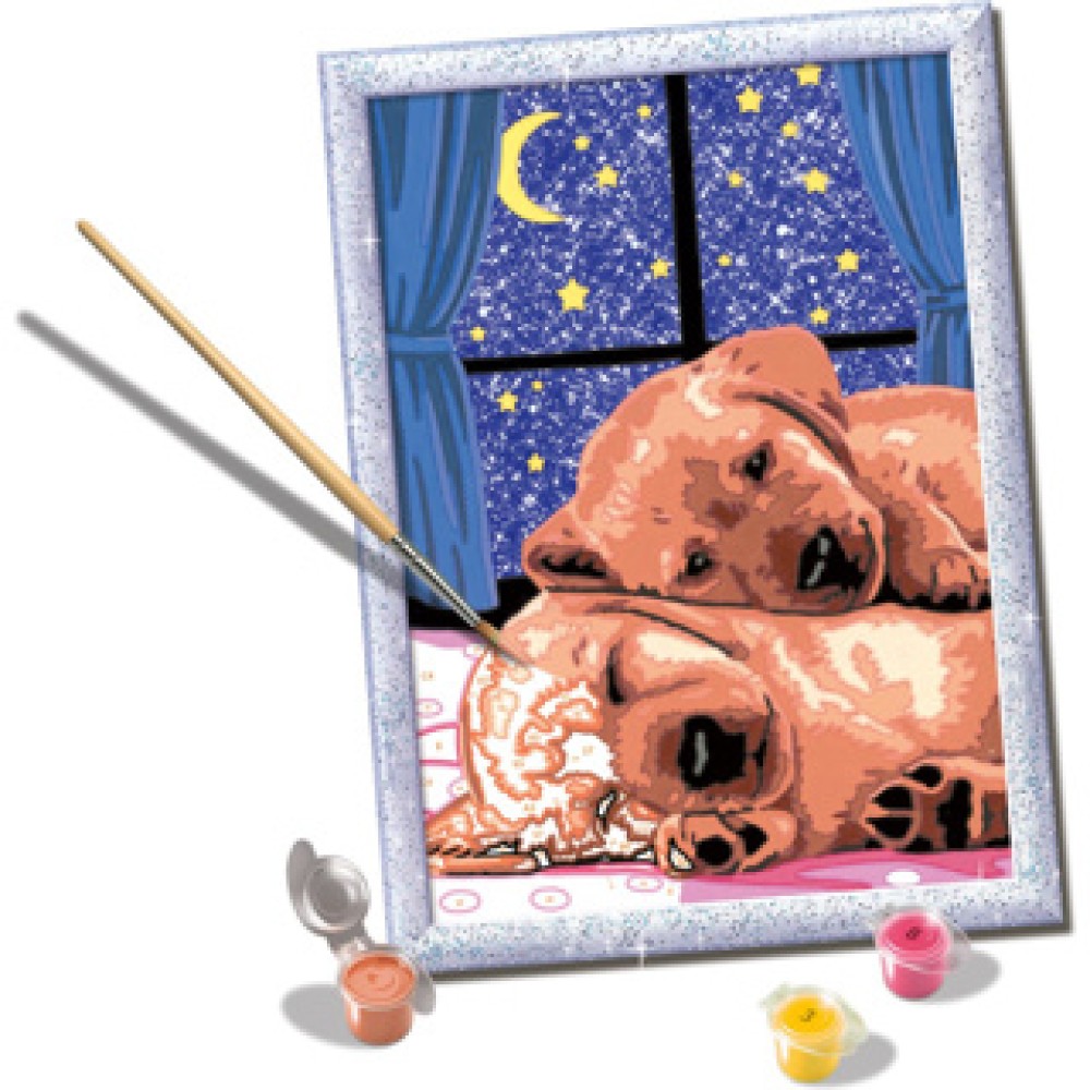 Ravensburger Creart schilderen op nummer slapende hond en poes
