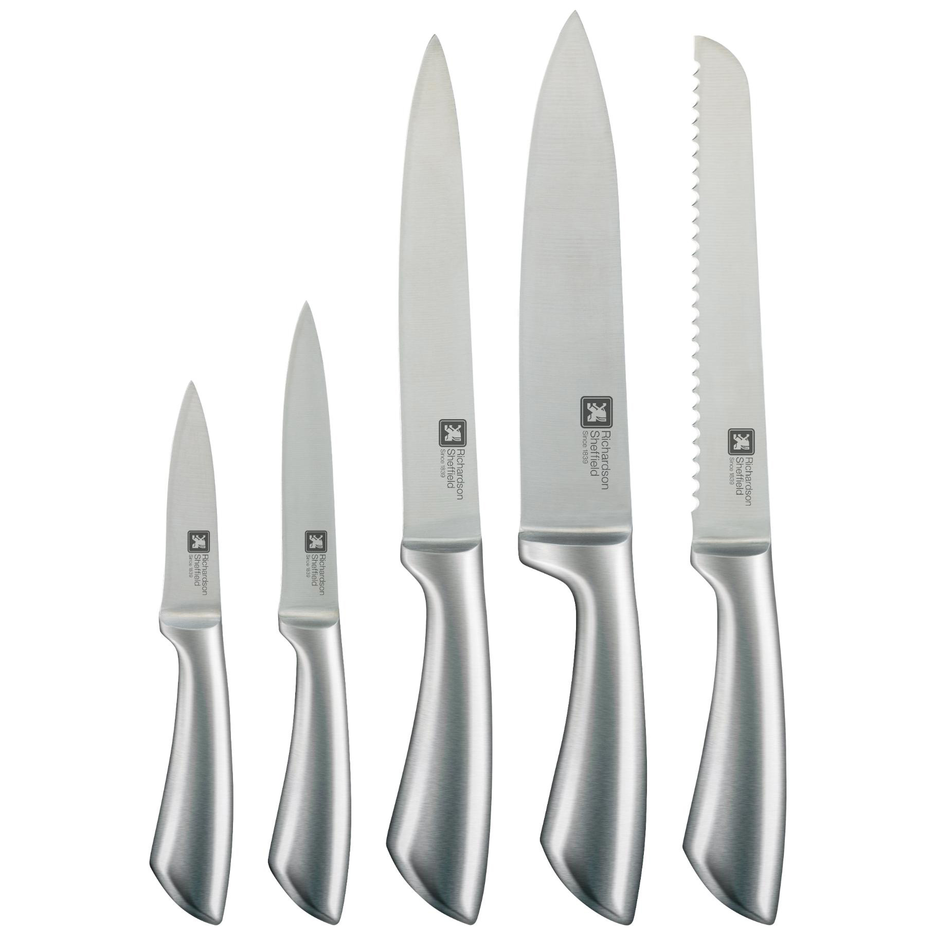 Het Richardson Sheffield messenblok is een vijfdelige set van hoge kwaliteit. Deze set bevat een scala aan messen, inclusief een koksmes, vleesmes en broodmes. Elk mes is vakkundig gemaakt met scherpe, duurzame messen en comfortabele handgrepen. De messen worden veilig bewaard in een stijlvol en stevig blok waardoor ze altijd binnen handbereik zijn. Perfect voor zowel de beginnende kok als de ervaren chef-kok.