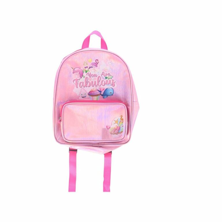 Rugzak Shiny Pink Fabulous is een roze rugzak met print van o.a. eenhoorn, zeemeermin en flamingo emoji’s. De rugzak heeft een groot vak, voorvak en verstelbare banden. Geschikt voor kinderen vanaf 3 jaar.