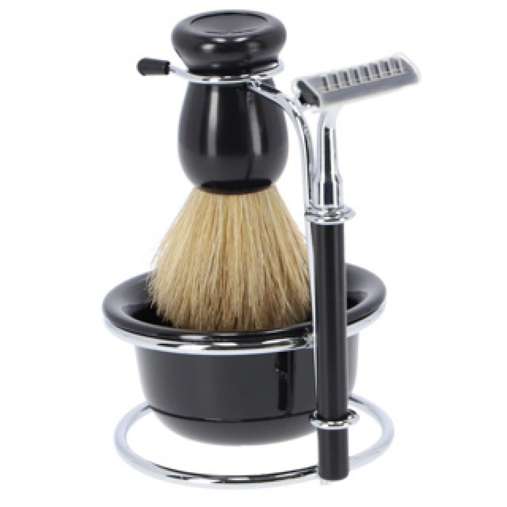 - Zeepbakje en scheerkwast voor een perfecte voorbereiding.