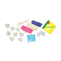3 kleuren kaars was; Kaars lont; Schelpen; 3 Maatbekers; 3 Cocktailprikkers; Decoratiezand blauw; Instructies
