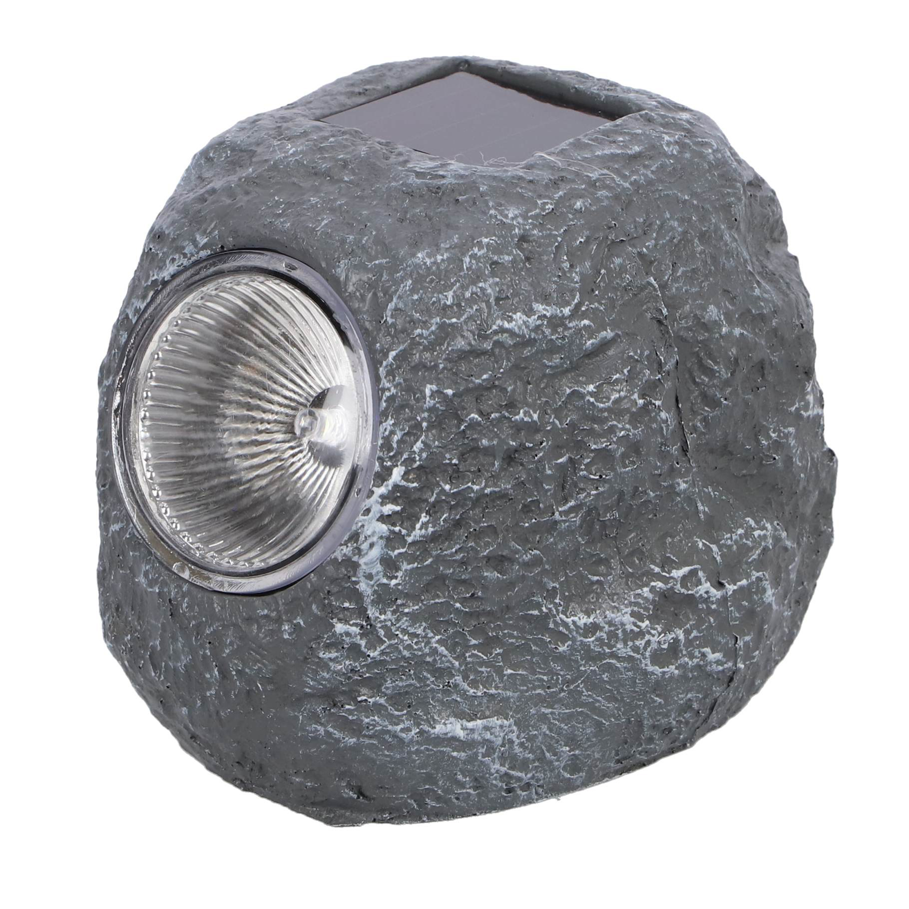 Deze stijlvolle solar lamp van polyresin in de vorm van een steen voegt een moderne uitstraling toe aan je tuin of terras. Met een ingebouwde zonnecel laadt de lamp zich overdag op en straalt ‘s avonds een warm licht uit. Perfect voor sfeervolle verlichting en accentuering van je buitenruimte!