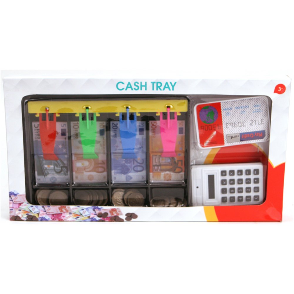 Met het speelgeld in deze set kan jij voorlopig weer even vooruit wanneer je speelt dat je naar de winkel gaat! In de geldlade vind je briefgeld en muntgeld, waarmee je met klinkende munt kan betalen als je naar de speelgoedkassa gaat om af te rekenen. Je kan natuurlijk ook spelen dat je met de pinpas afrekent. Pak het pinapparaat/de rekenmachine en reken het juiste bedrag af. Voor je het weet ben jij een kei in rekenen, en daarnaast kan je makkelijk al je speelgoedboodschappen betalen!