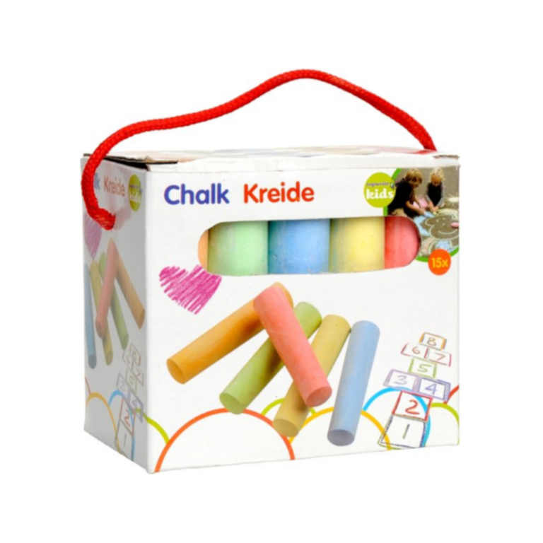 Dit zijn 15 ideale ideale stoepkrijten in 5 verschillende kleuren. Roze, geel, groen, oranje en blauw.