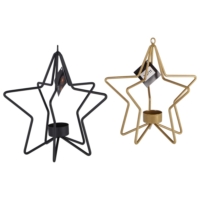Theelichthouder ijzer ster 2 assorti hoogte 22 cm