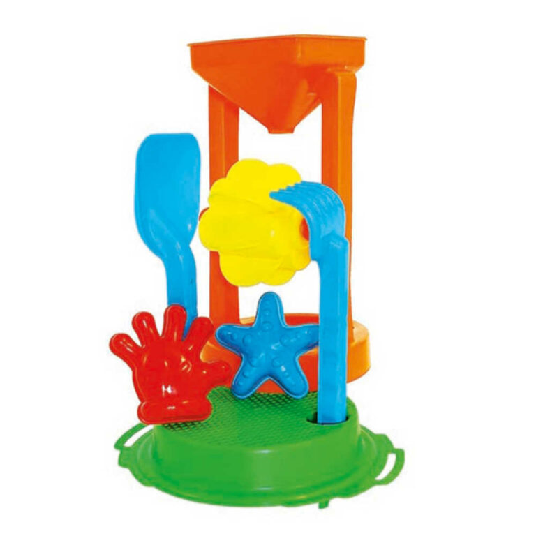 Zandbak speelgoed set 6 delig Met dit leuke speelgoed set heb je uren plezier in de zandbak! Van lekker graven met je schepje, tot het zeven van zand. Wie maakt de mooiste zandfiguurtjes? Daar kom je maar op één manier achter! Inhoud : Zand/watermolen - schepje - harkje - zeefje - 2 vormpjes.