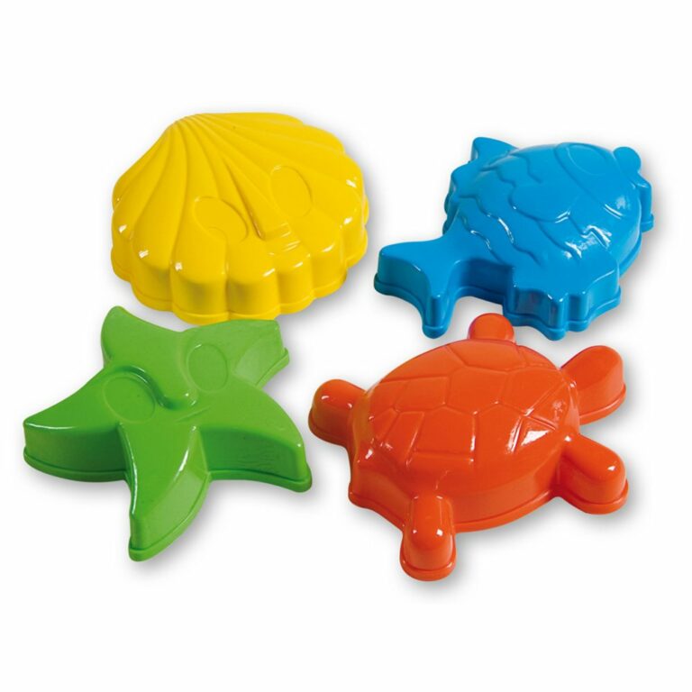 Ga lekker in de zandbak of op het strand spelen met deze leuke zandvormen. Deze set bevat vier vormen: een schelp, zeester, schildpad en vis. Geschikt voor kinderen van 2 jaar of ouder.