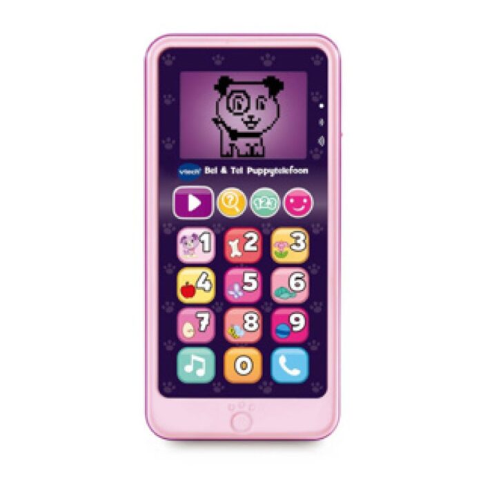 De Vtech Bel & Tel Puppytelefoon in het roze is een geweldige speeltelefoon voor jonge kinderen. Deze interactieve telefoon helpt bij het leren van nummers, voorwerpen en tellen. Het schattige puppypersonage Violet maakt leren leuk met vrolijke reacties, animaties en zingende liedjes.