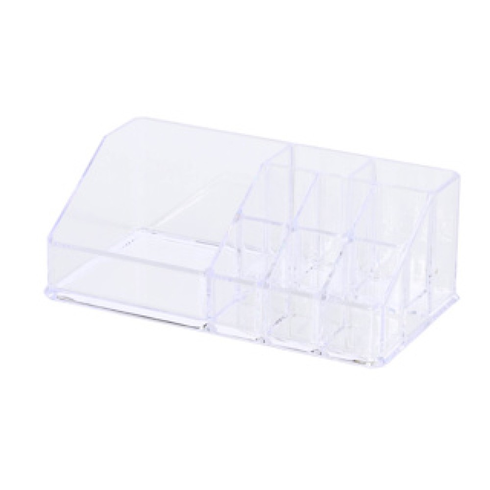 Houd je make-up georganiseerd met ons elegante cosmetica opbergbakje. Dit praktische bakje biedt voldoende ruimte voor al je favoriete beautyproducten, van lipstick tot oogschaduw. Met meerdere vakken is het een slimme en stijlvolle oplossing om je cosmetica altijd binnen handbereik te houden. De combinatie van zwart en transparant maakt het niet alleen functioneel, maar ook een mooie aanvulling voor je persoonlijke verzorgingsplek. Maak van chaos een ordelijke en stijlvolle opbergplek voor al je beauty essentials. Perfect voor zowel thuisgebruik als onderweg!