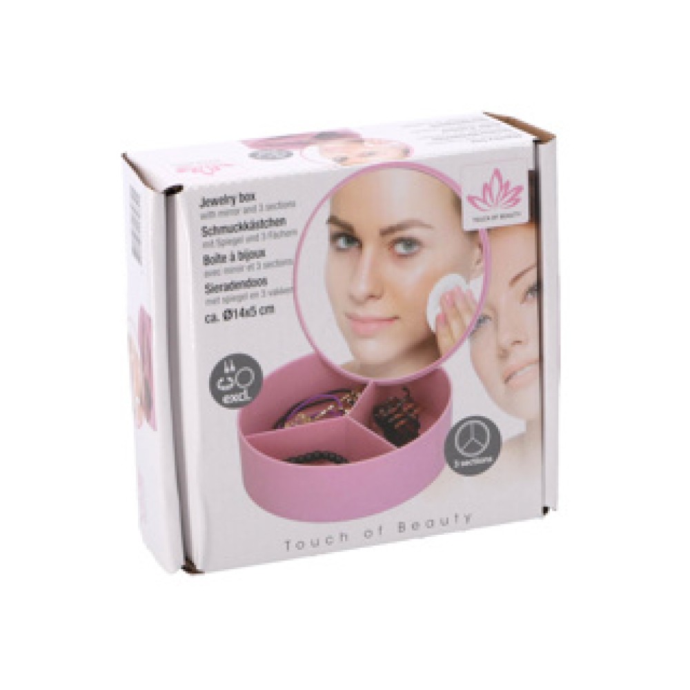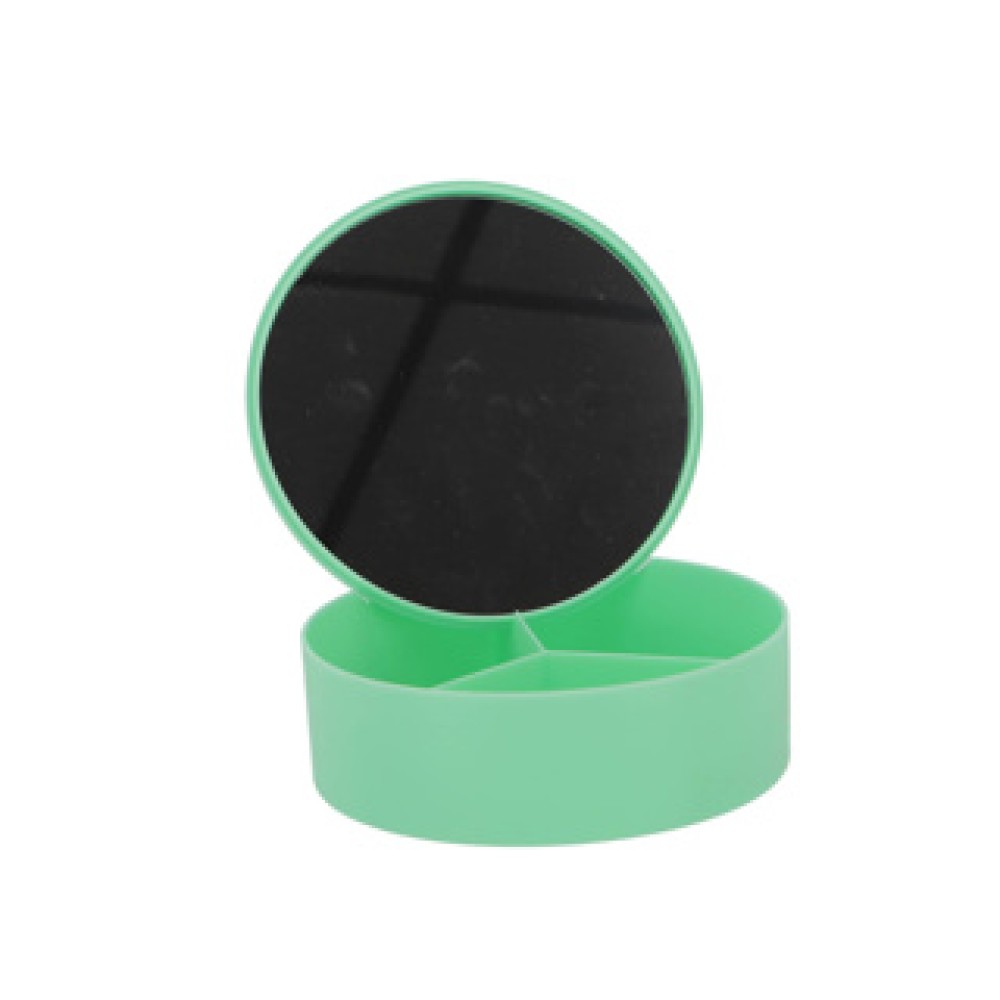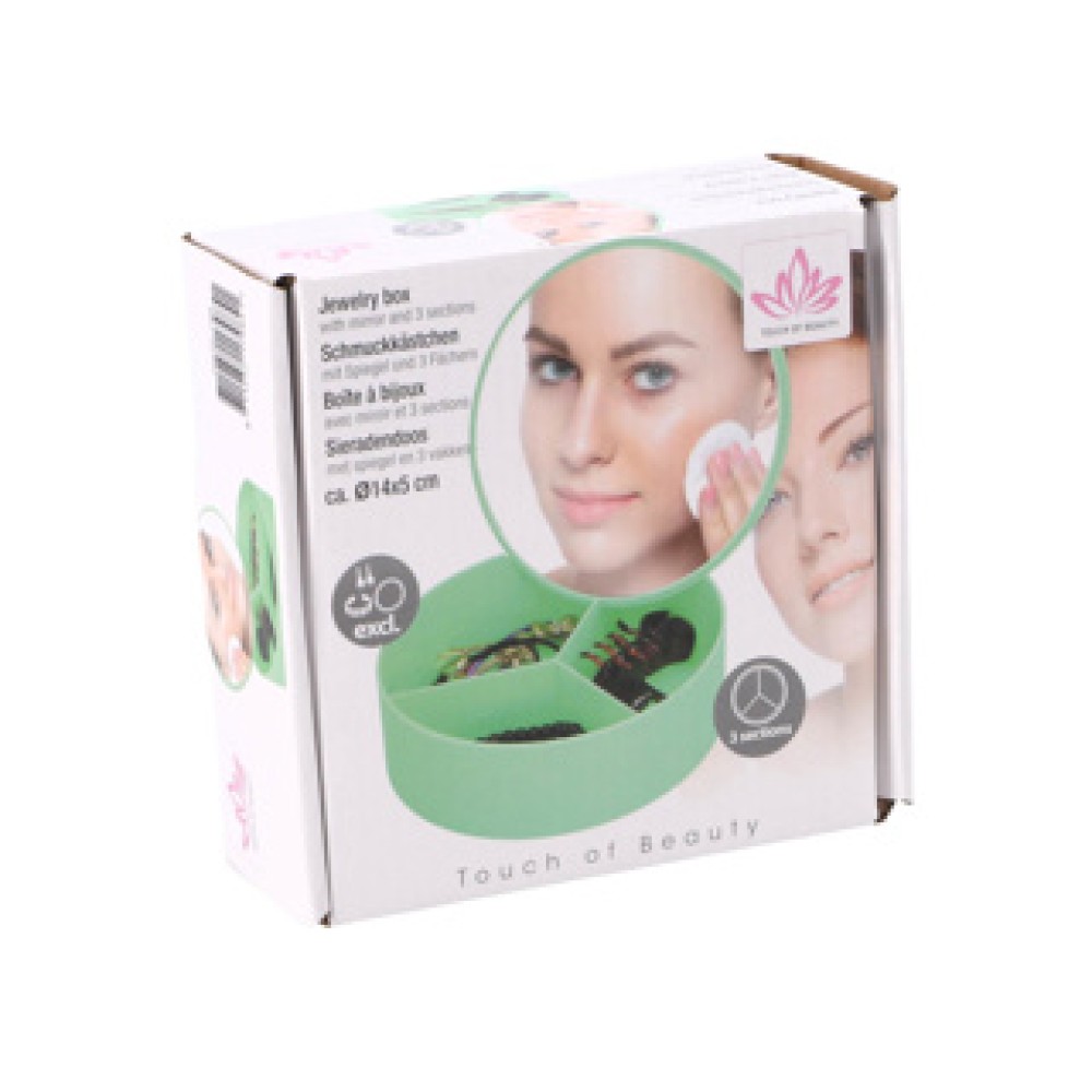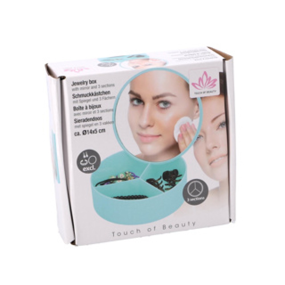 Het juwelendoosje met spiegel is de ideale oplossing voor het netjes opbergen van al jouw sieraden en kleine accessoires. Dit compact kunststof opbergdoosje heeft drie handige vakken en is verkrijgbaar in verschillende vrolijke kleuren. Met een spiegel in het deksel, kun je je look eenvoudig checken waar je ook bent!