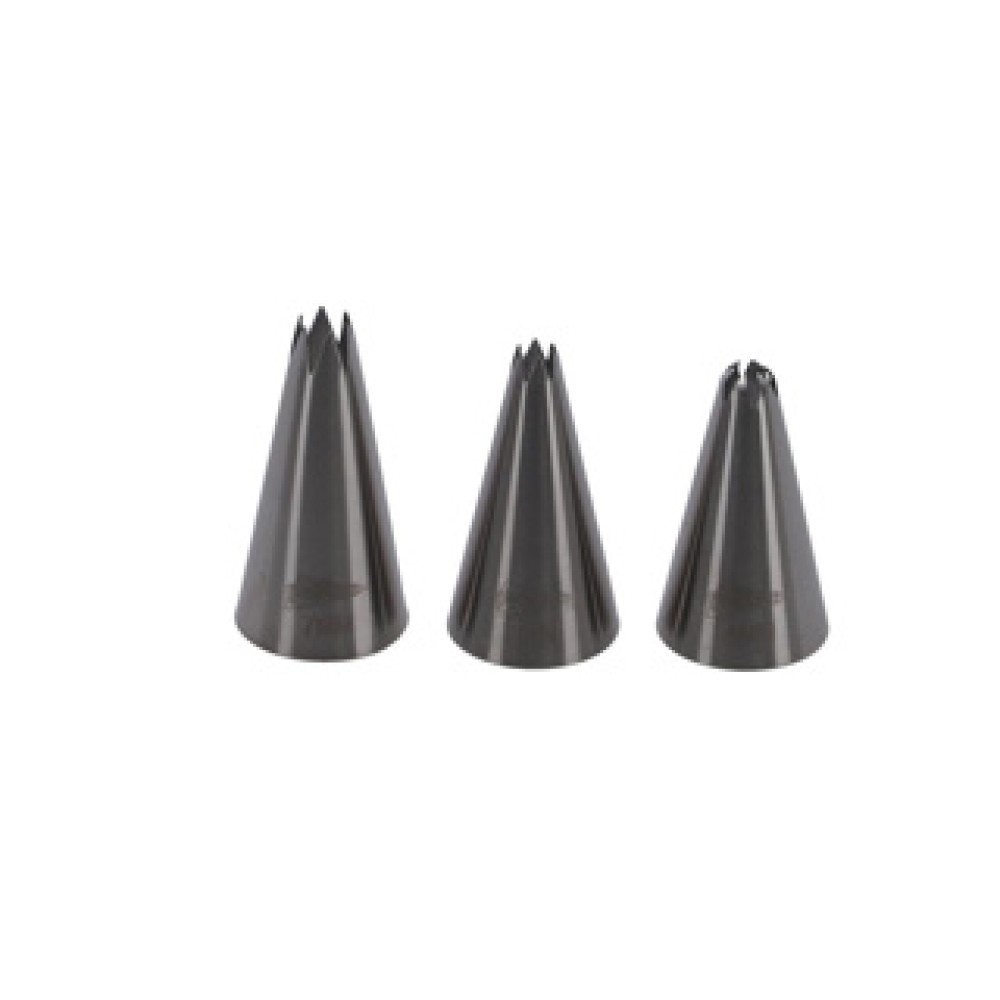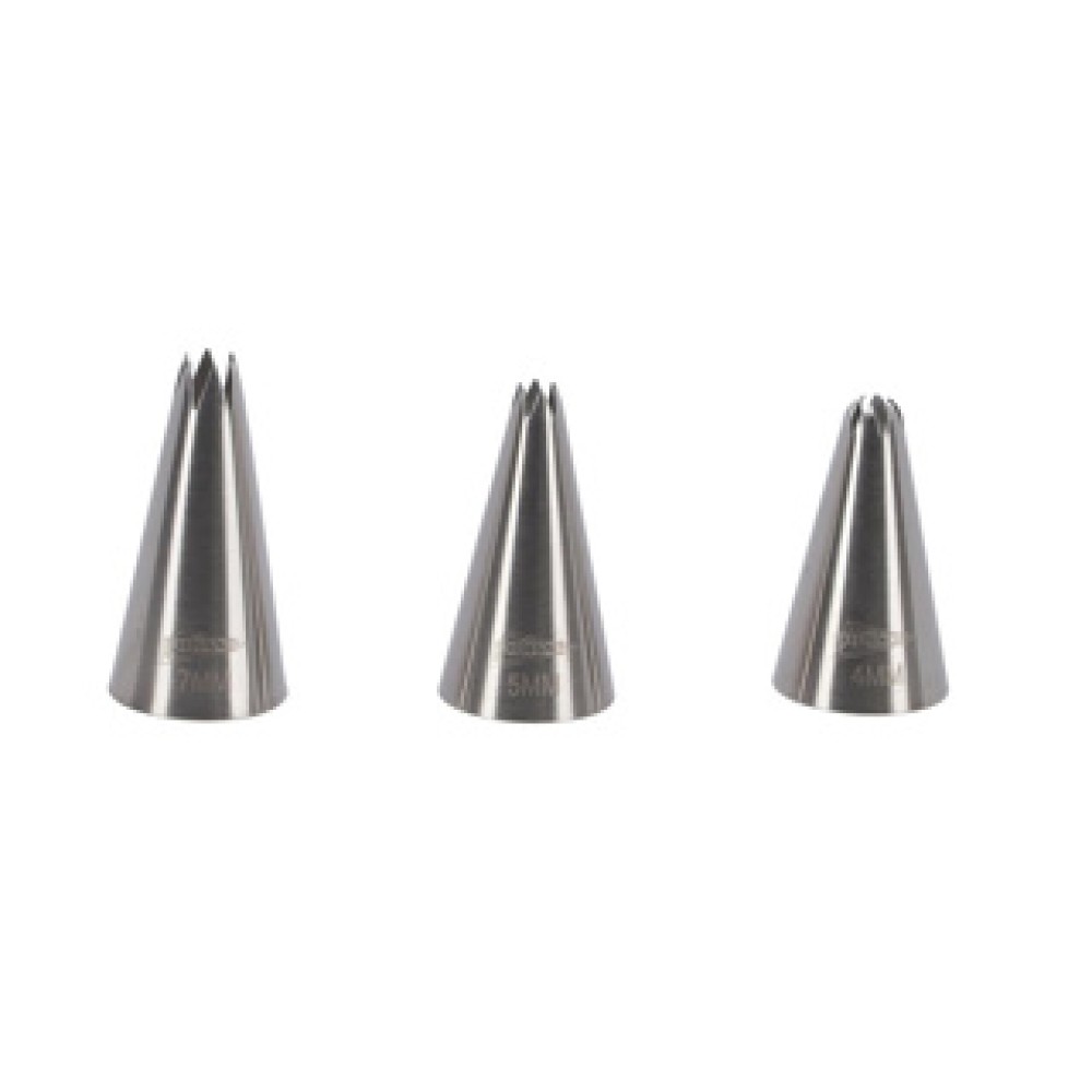 Met de Patisse spuitmondjes maak je de mooiste decoraties voor taarten en gebak! Deze set van drie roestvrijstalen mondstukken is perfect voor zowel beginners als ervaren bakkers. Elk mondje heeft een unieke opening, zodat je verschillende effecten kunt creëren.