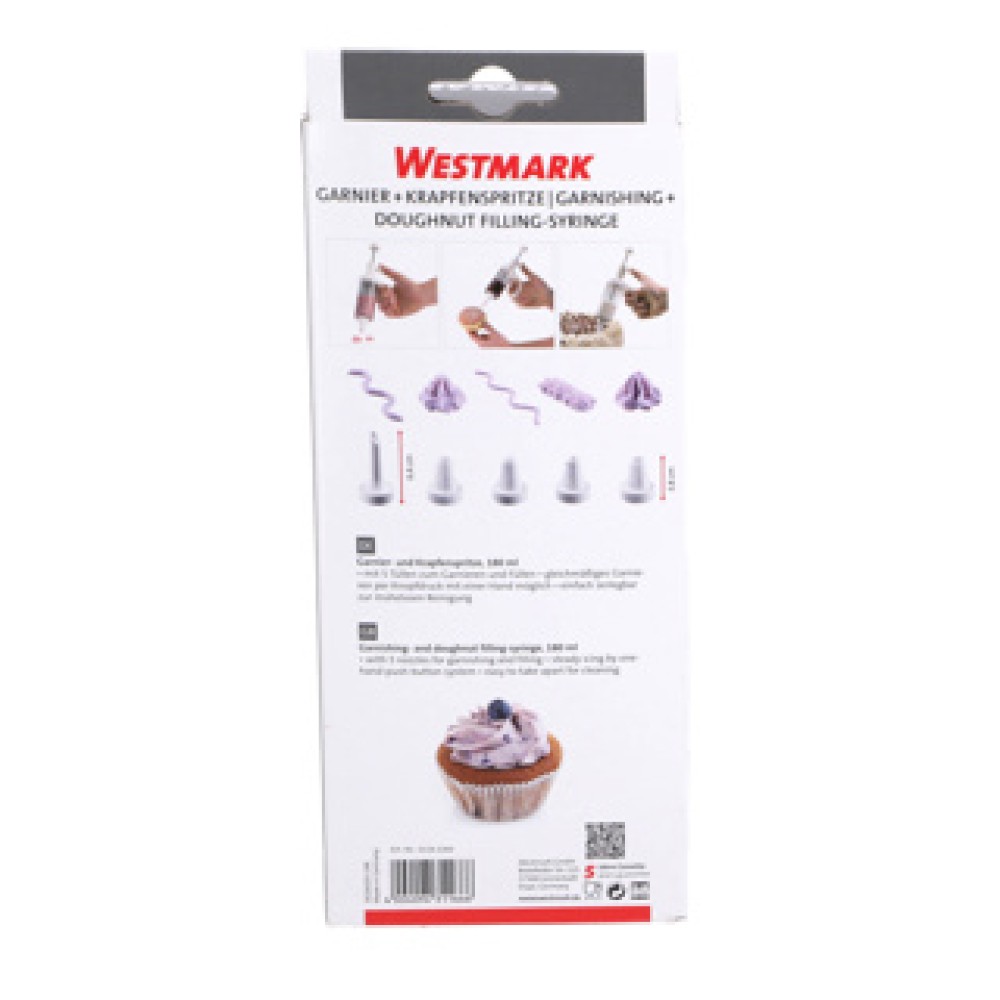 De Westmark Garneerspuit van 180 ml is perfect voor het decoreren van al jouw zoete lekkernijen. Of je nu taarten, cupcakes of donuts wilt vullen, deze spuit maakt het eenvoudig en leuk!