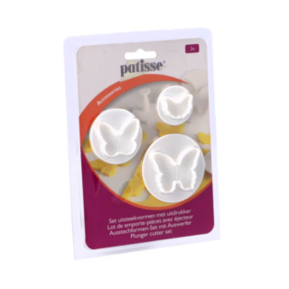 Met de Set uitsteekvormen met uitdrukker kun je eenvoudig prachtige koekjes, taarten en andere bakwaren maken. Deze set bestaat uit drie kunststof uitsteekvormen in de vorm van een vlinder, perfect voor elke feestelijke gelegenheid. Laat je creativiteit de vrije loop en verras vrienden en familie met je bakvaardigheden!