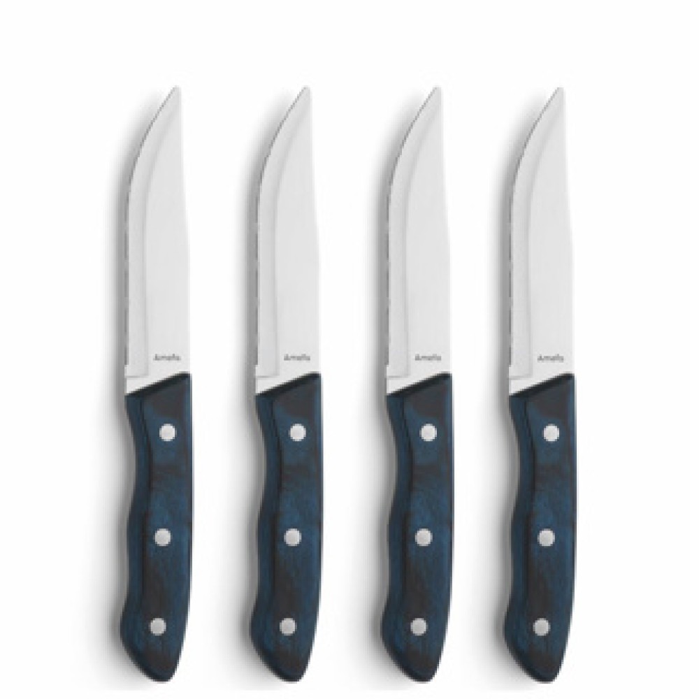 De Amefa Hercule steakmessen zijn essentieel voor iedereen die van een goed stuk vlees houdt. Deze set van vier messen maakt het snijden van steak eenvoudig en plezierig. Dankzij de scherpe snijkant en comfortabele handgrepen zijn ze voor zowel dagelijks gebruik als speciale diners perfect.