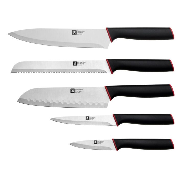 - Vijf essentiële keukenmessen voor diverse snijtaken.