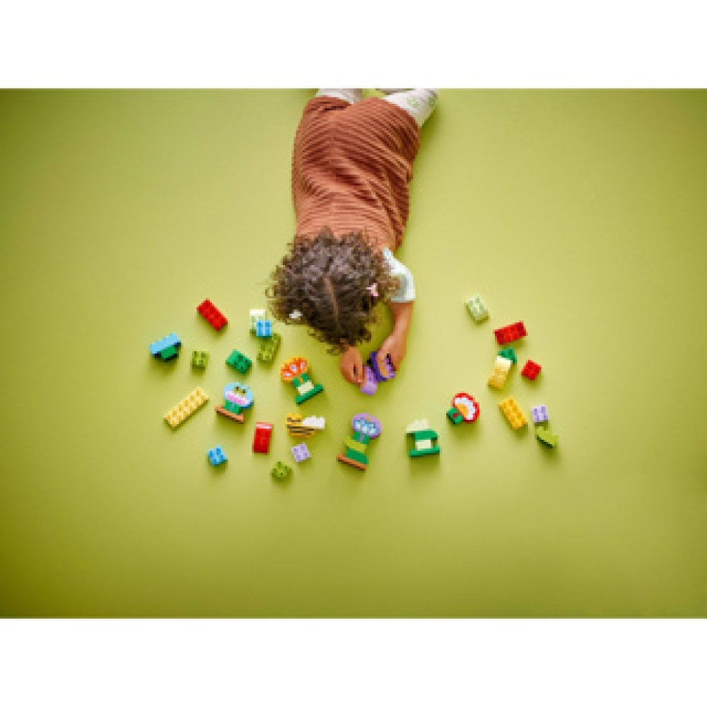 Laat de creativiteit van uw peuter bloeien met de LEGO DUPLO Creatieve bloementuin. Deze kleurrijke set bestaat uit diverse bouwstenen waarmee kinderen hun eigen prachtige tuin kunnen creëren. Terwijl ze spelen, ontwikkelen ze niet alleen hun fijne motoriek, maar leren ze ook over kleuren, cijfers en taal. De schattige LEGO DUPLO dieren en bloemen zorgen voor extra speelmogelijkheden en stimuleren de fantasie van uw kleintje. Perfect voor urenlang plezier en ontdekken in de wereld van bouwen en leren!