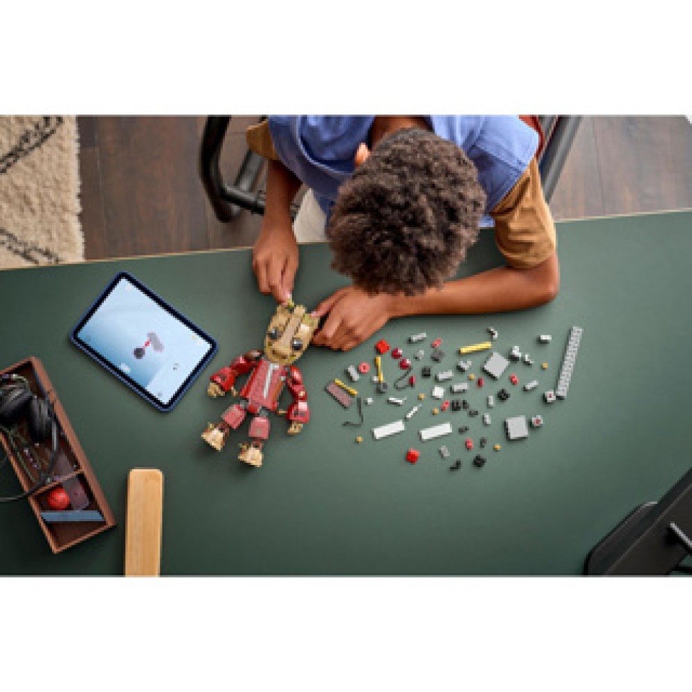 Breng de geweldige Baby Groot tot leven met de verstelbare Groot in Ravager jumpsuit (76341) figuur voor een dynamisch display en actiespel. Jongens, meisjes en kinderen vanaf 10 jaar kunnen het bouwbare LEGO Marvel speelgoed voor kinderen gebruiken om hun favoriete Marvel filmscènes opnieuw te beleven en hun eigen avonturen te bedenken. In deze LEGO Marvel verzamelset draagt Groot het Ravager pak uit de Marvel Studios film Guardians of the Galaxy Vol. 2. De bouwbare figuur wordt geleverd met een ontsteker met 2 knoppen en 2 beweegbare hendels die verwijzen naar een bekende scène uit de film. Het personage kan in allerlei houdingen worden neergezet met volledig verstelbare schouders, armen, vingers, heupen, voeten en nek, plus aanpasbare wenkbrauwen voor verschillende gezichtsuitdrukkingen. Dit LEGO superheld bouwpakket voor kinderen is een geweldig Marvel cadeau voor jongens en meisjes die houden van bouwen, fraaie kinderkamer decoratie en rollenspellen.. En met de LEGO Builder app kunnen kinderen vol vertrouwen bouwen: inzoomen, draaien in 3D en hun voortgang bijhouden met de eenvoudig te volgen digitale instructies.