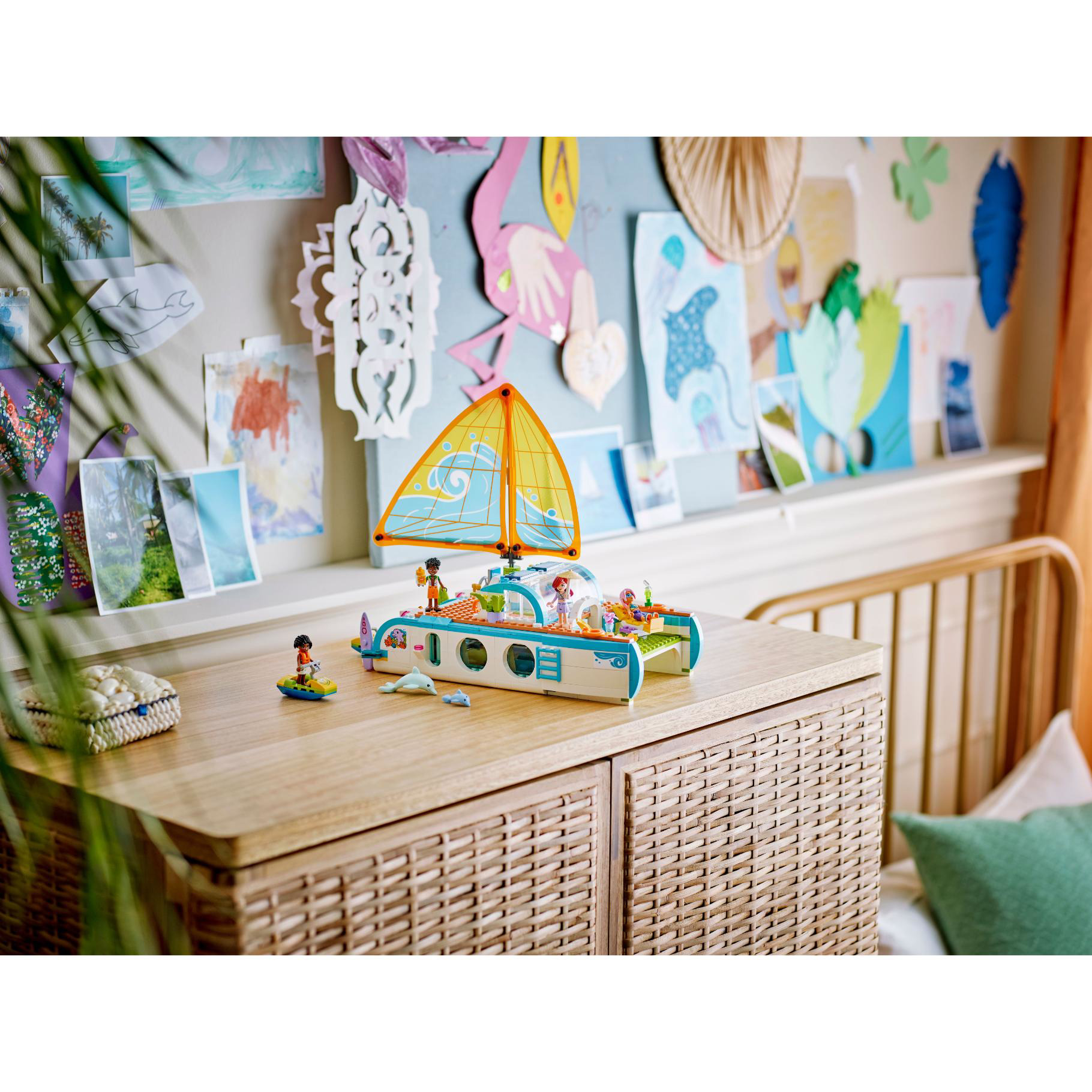 - Speelgoed boot vol leuke kenmerken – kinderen kunnen de LEGO boot bouwen en vervolgens hun eigen verhalen voor de Friends personages bedenken waarin de vrienden spelen, zich ontspannen in het bubbelbad op de boot en dolfijnen spotten