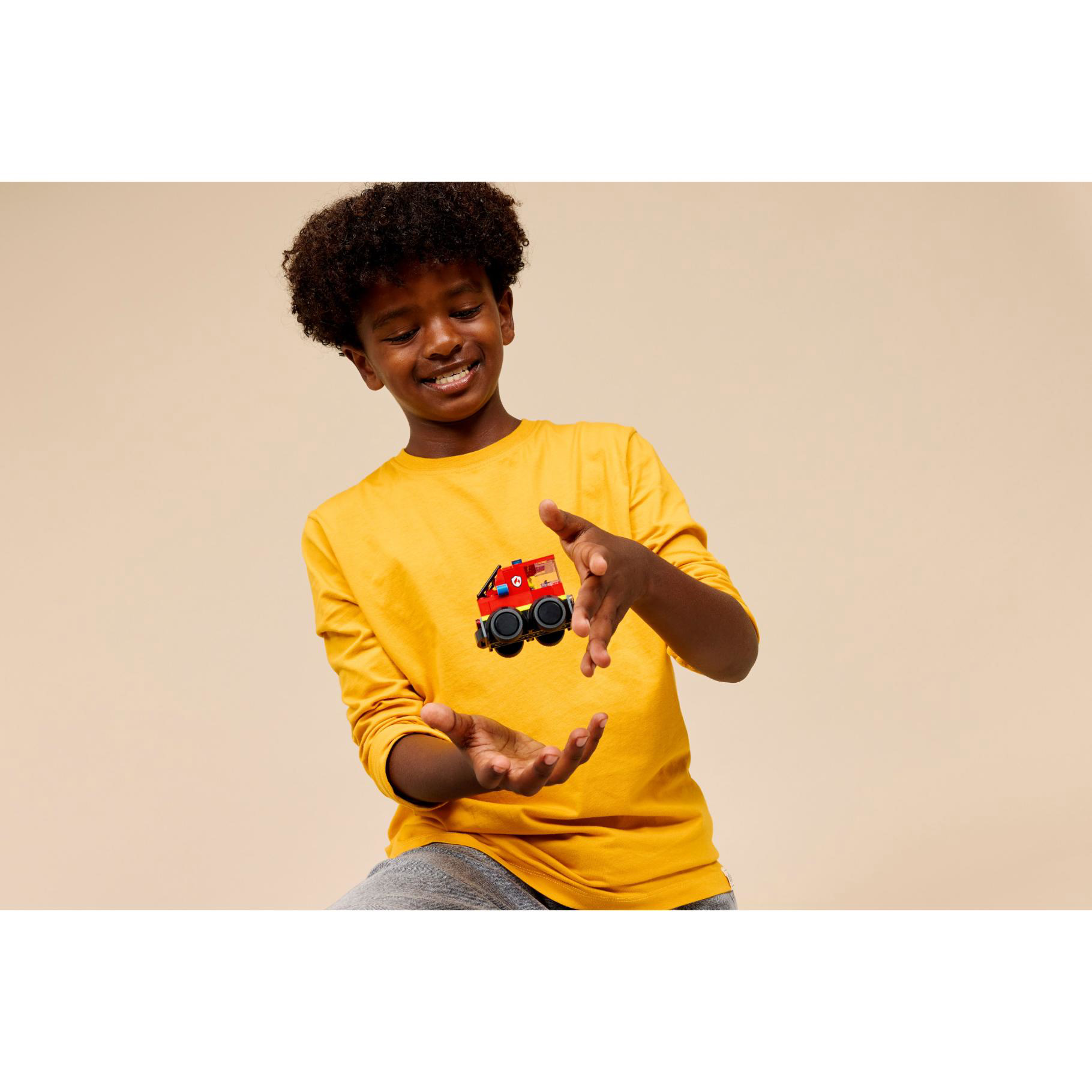 - JUNIOR MINIFIGUUR VAN EEN BRANDWEERMAN – kinderen kunnen de minibrandweerman op de bestuurdersstoel zetten voordat ze aan spannende brandblusoperaties beginnen