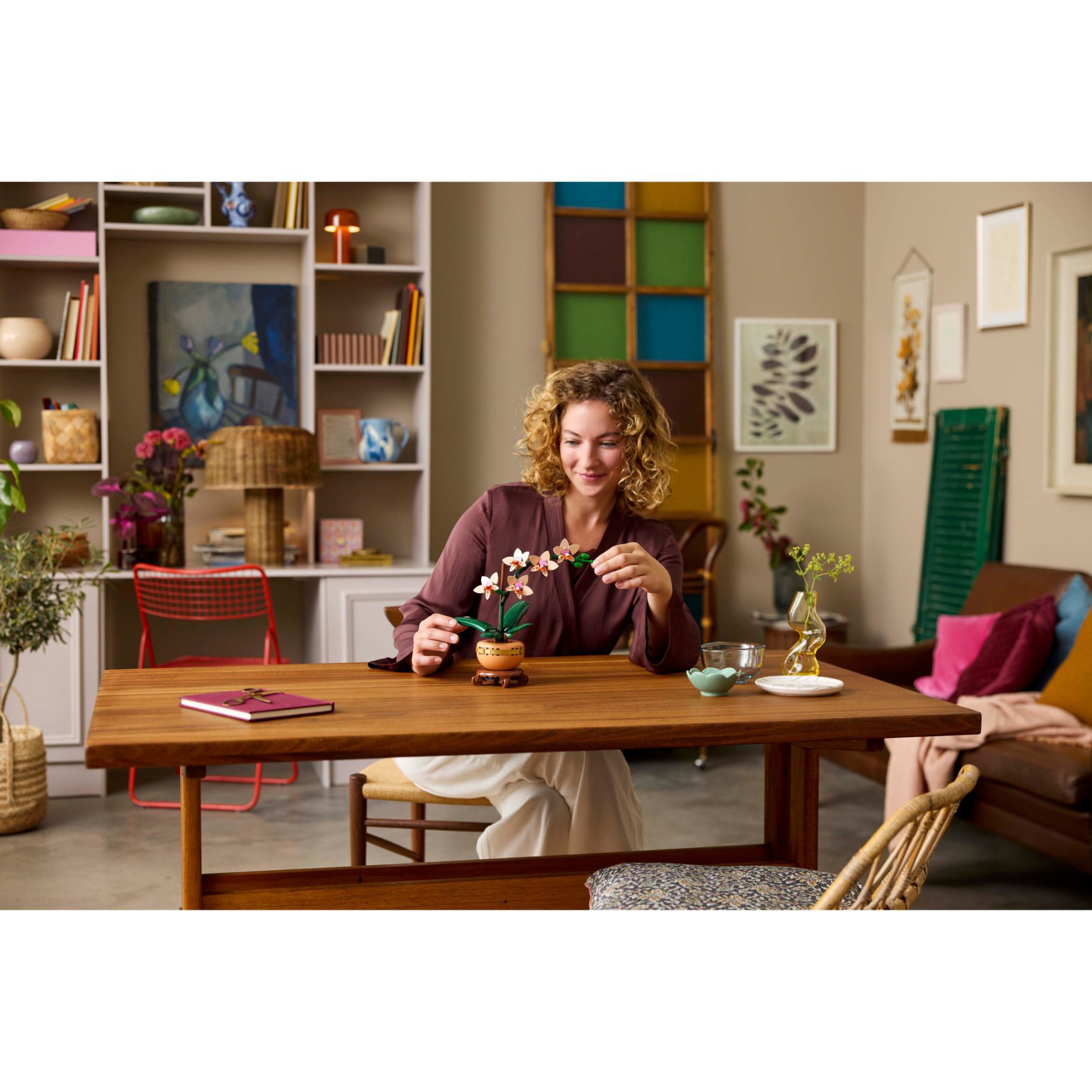- Bloemendisplay – laat je creativiteit opbloeien met de LEGO® Botanicals Miniorchidee bouwset voor volwassenen, waarmee beginnende bloemisten een decoratieve LEGO plant kunnen maken